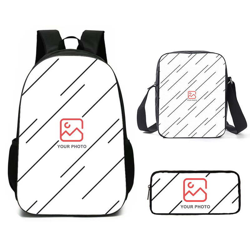Mochila impresa de venta caliente transfronteriza, mochila escolar para estudiantes de primaria y secundaria, mochila de gran capacidad, bolso, estuche para lápices, juego de tres piezas