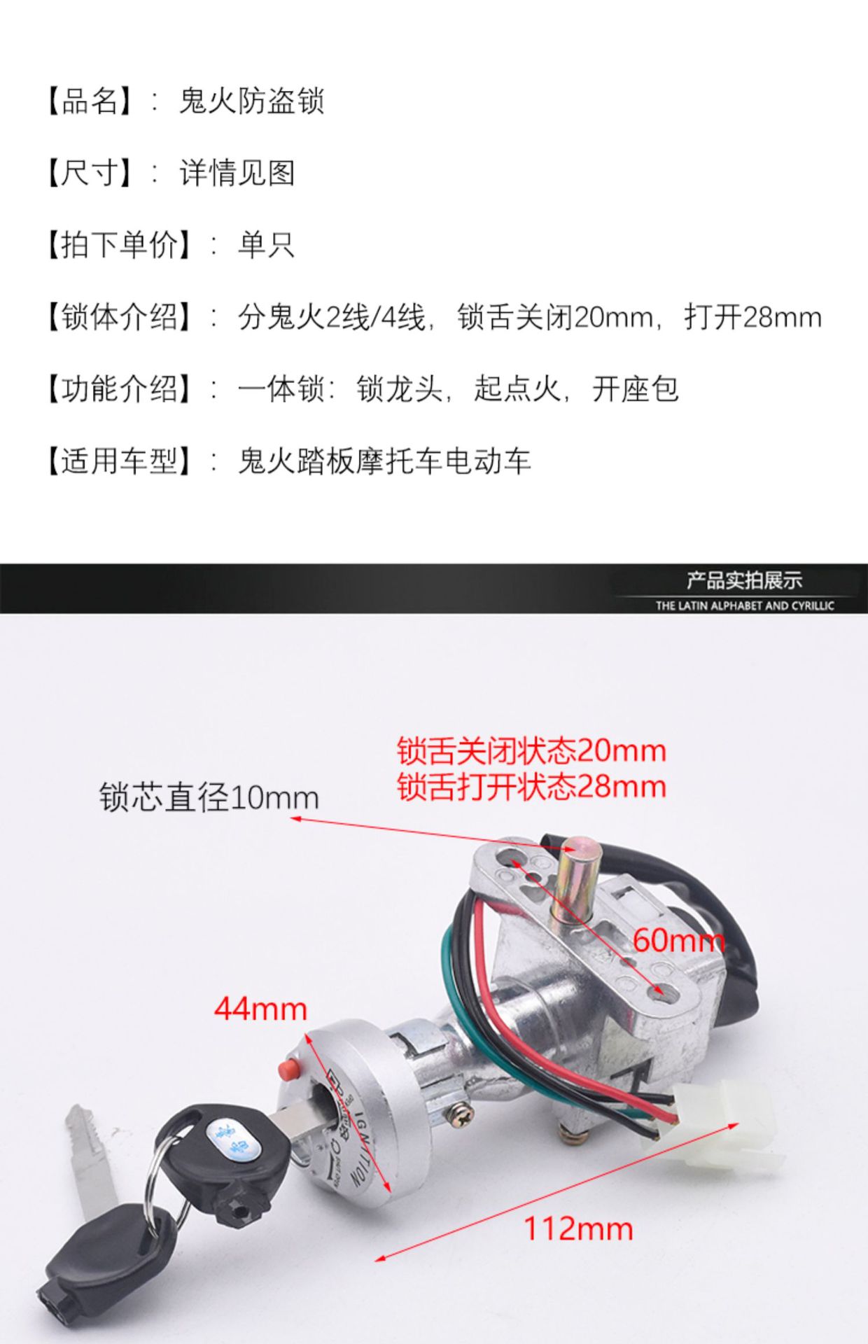 Pedal coche de batería de fuego fantasma primera generación y segunda generación Qiaoge pequeño tortuga Wang motocicleta cerradura de puerta eléctrica antirrobo llave interruptor de bloqueo