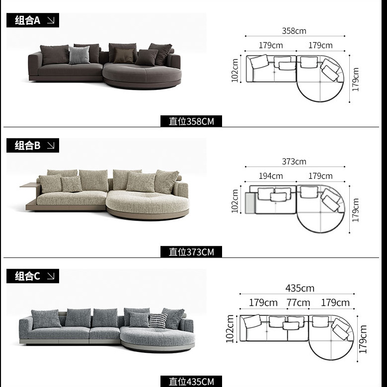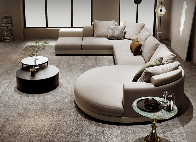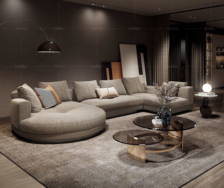 Semicircular compuesto de tela gran piso plano área de villa sala de modelo de departamento de ventas área de espera del hotel sofá compuesto de escuela