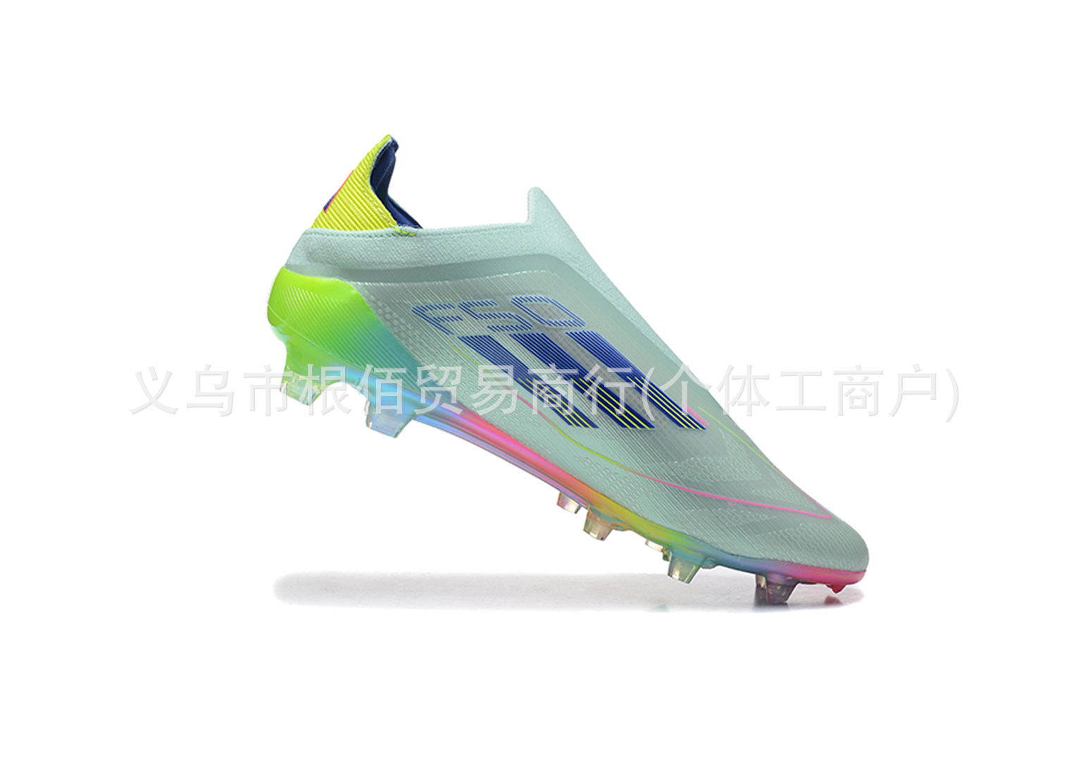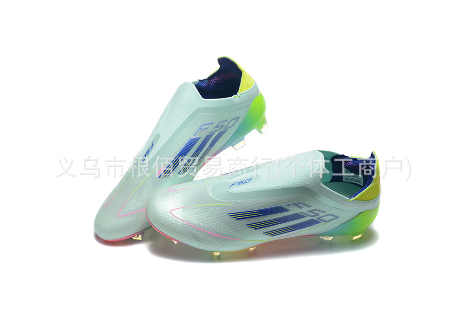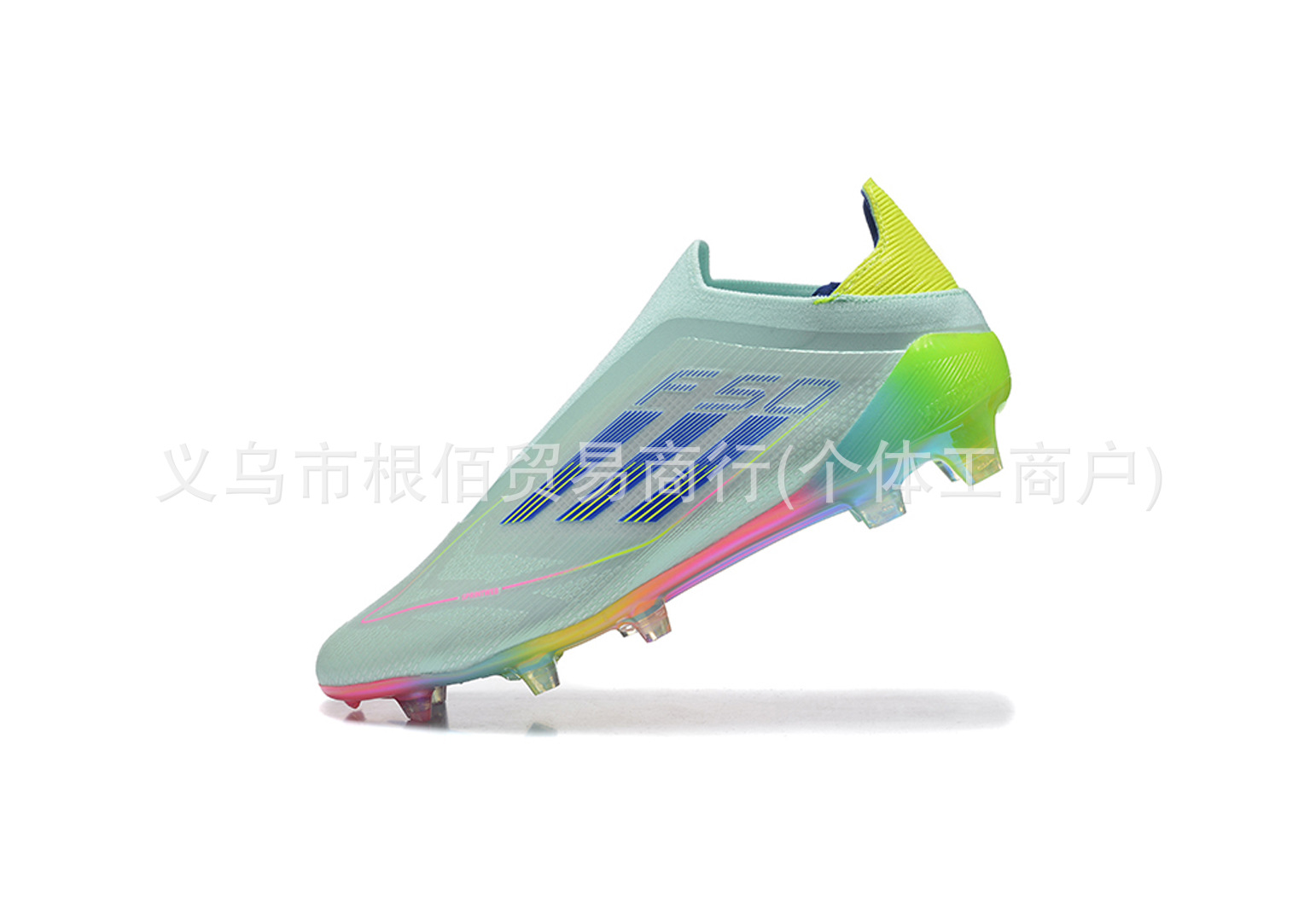 Fábrica de comercio electrónico transfronterizo venta directa F50 sin cordón de zapatos de punto antideslizante impermeable FG zapatos de fútbol velcro ligero