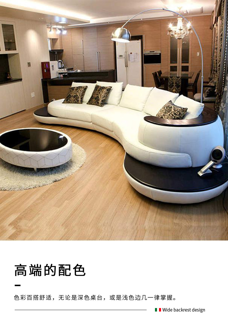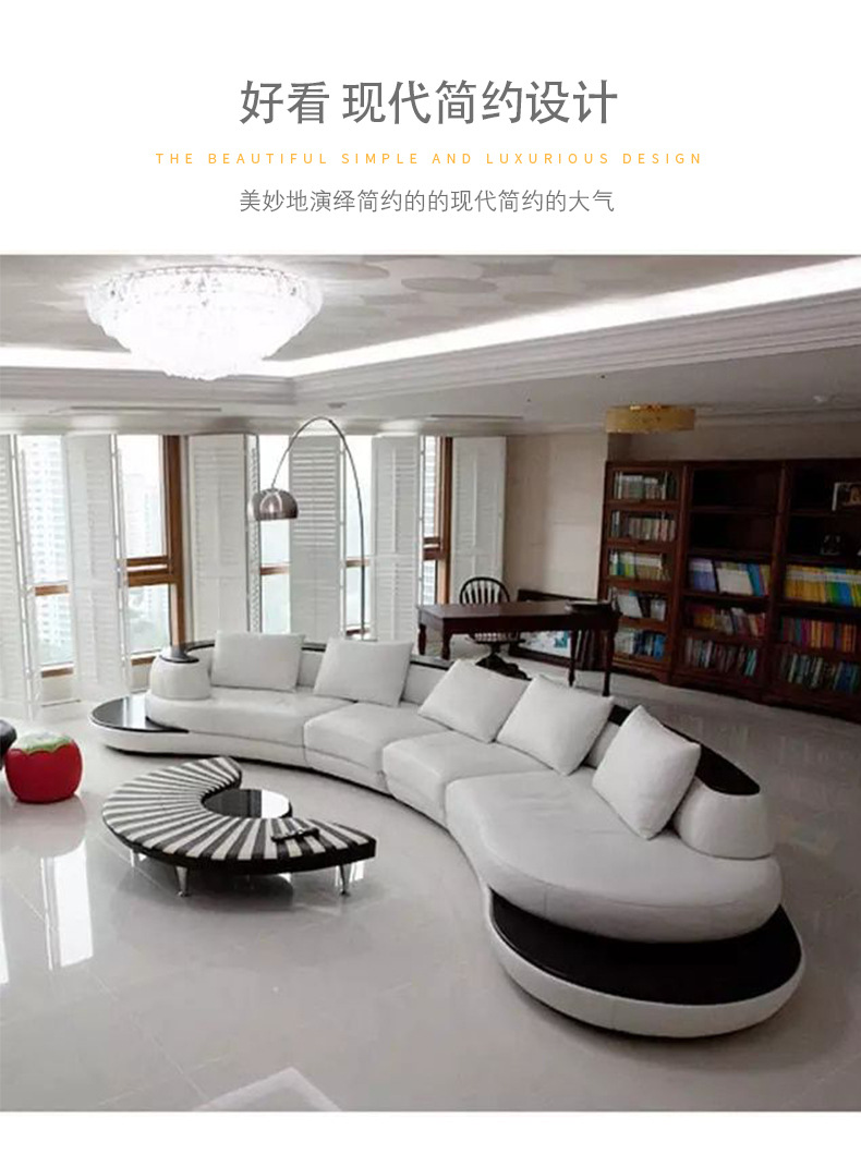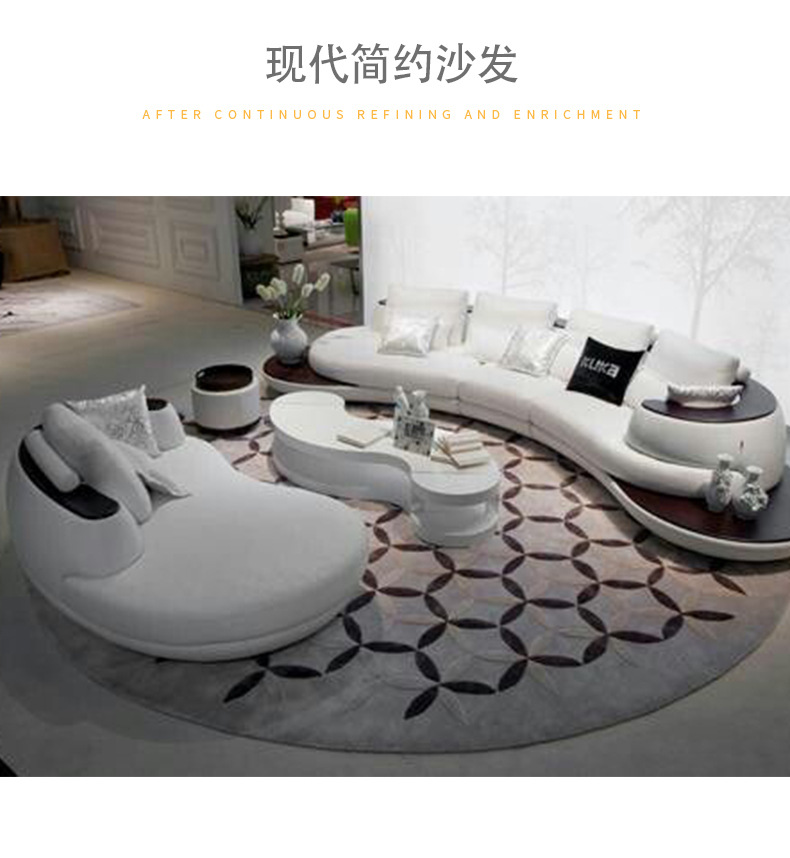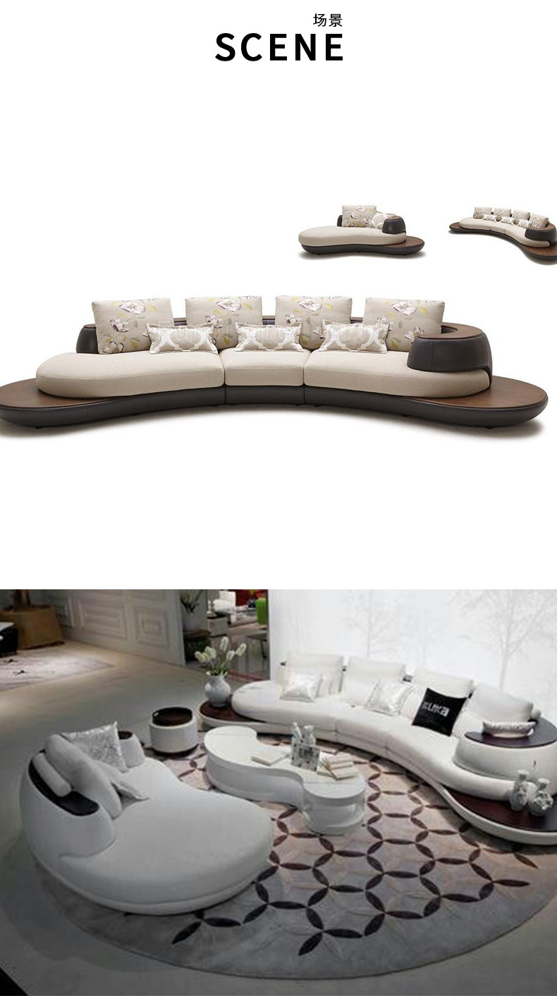 Combinación de sofá de cuero minimalista con costuras curvas de estilo italiano, lujo ligero, club de alta gama, hotel, villa, sofá creativo