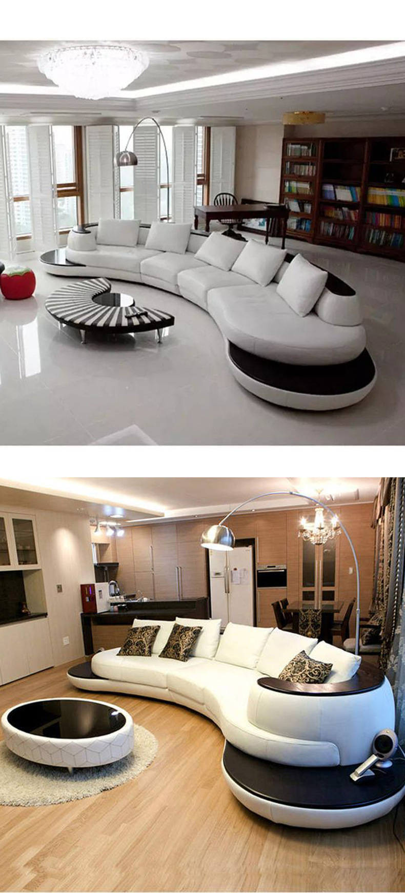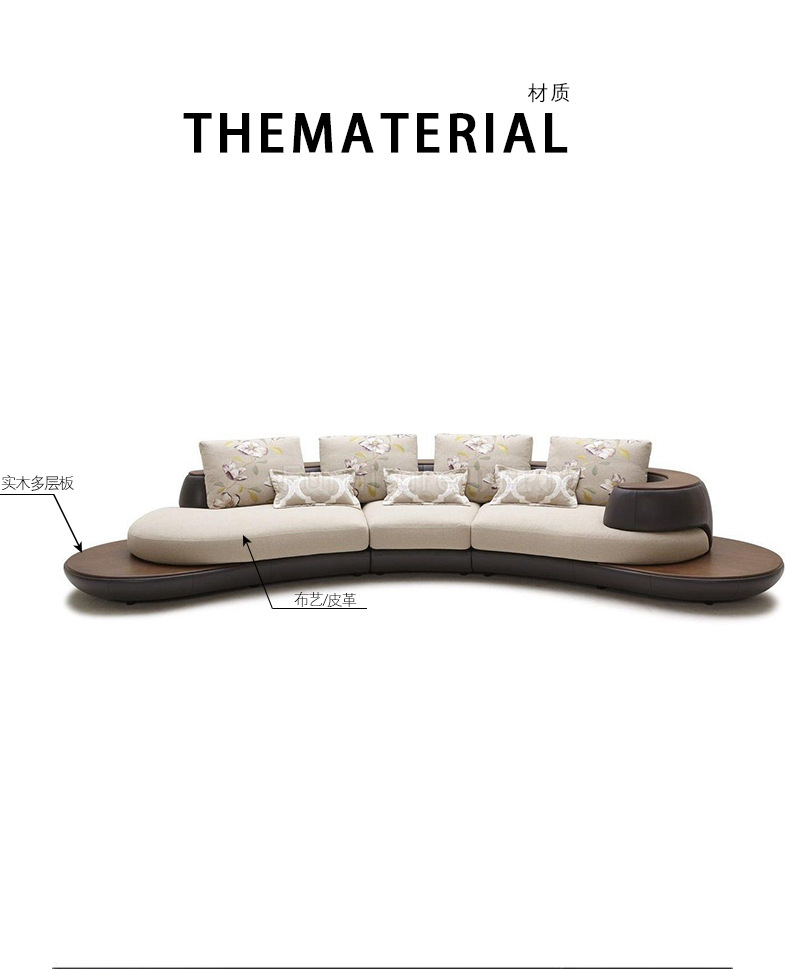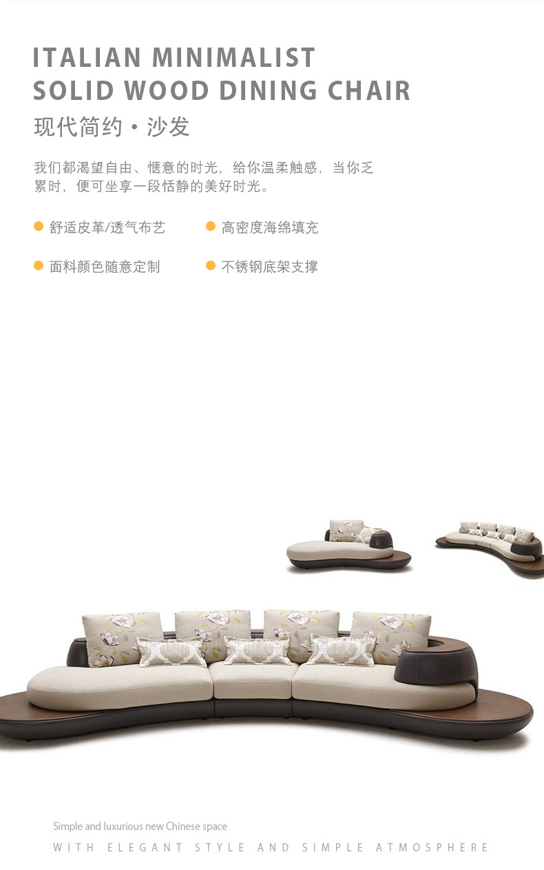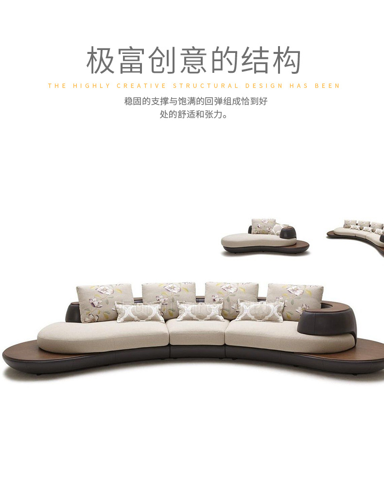 Combinación de sofá de cuero minimalista con costuras curvas de estilo italiano, lujo ligero, club de alta gama, hotel, villa, sofá creativo