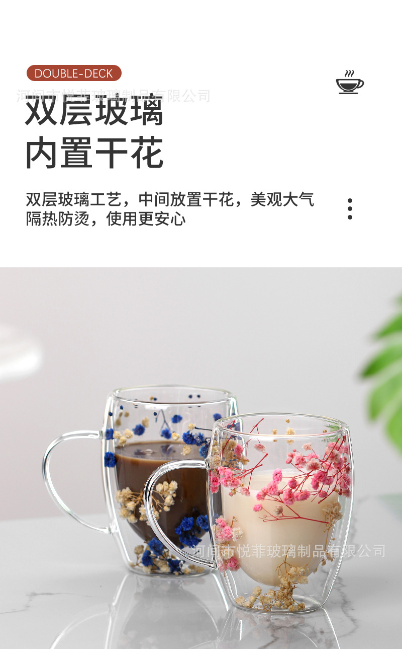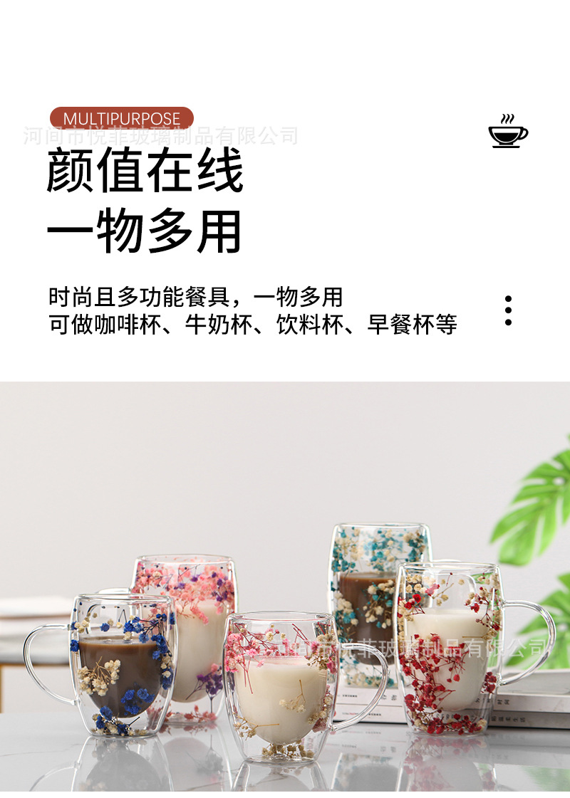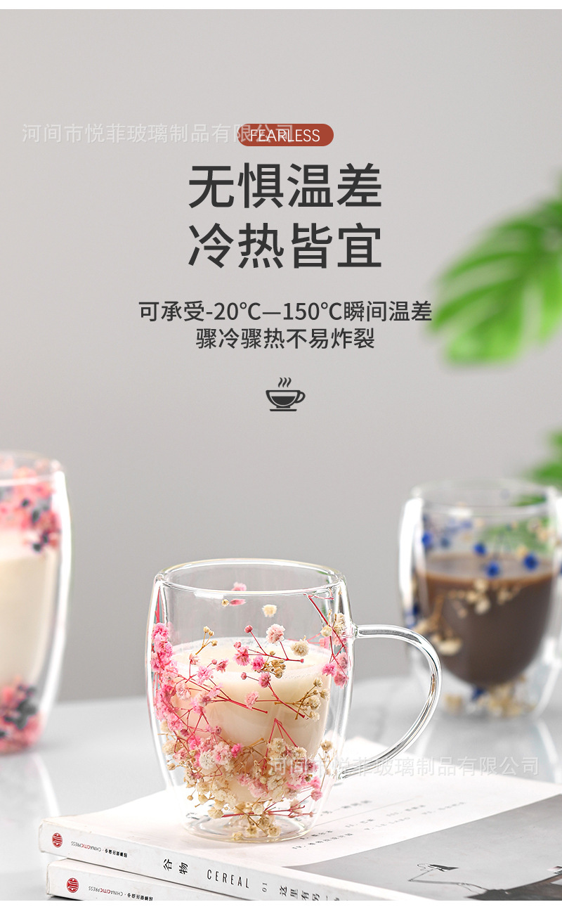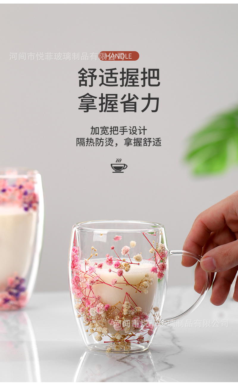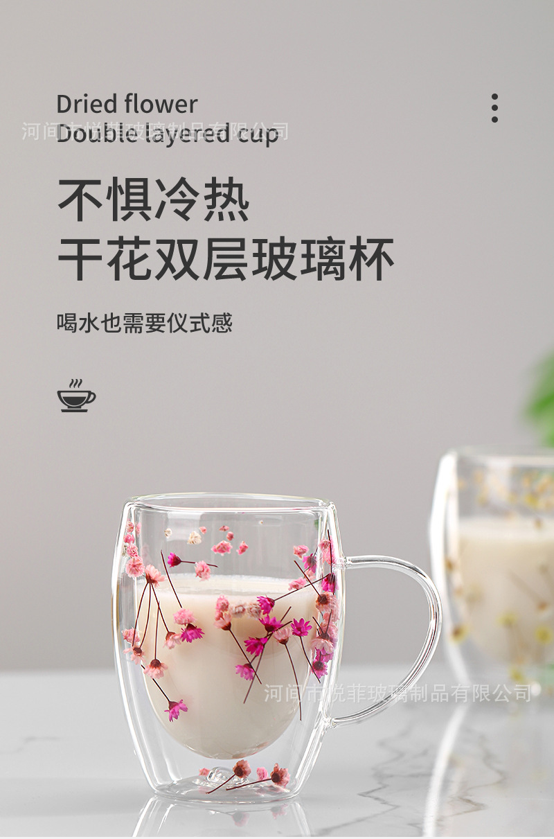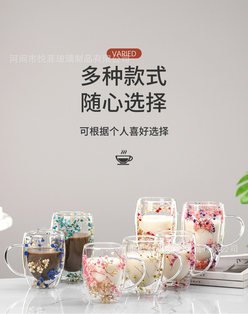 Celebridad de Internet flor real vidrio de doble capa de vidrio estrellado de alto aspecto taza de café de leche transfronteriza vidrio simple