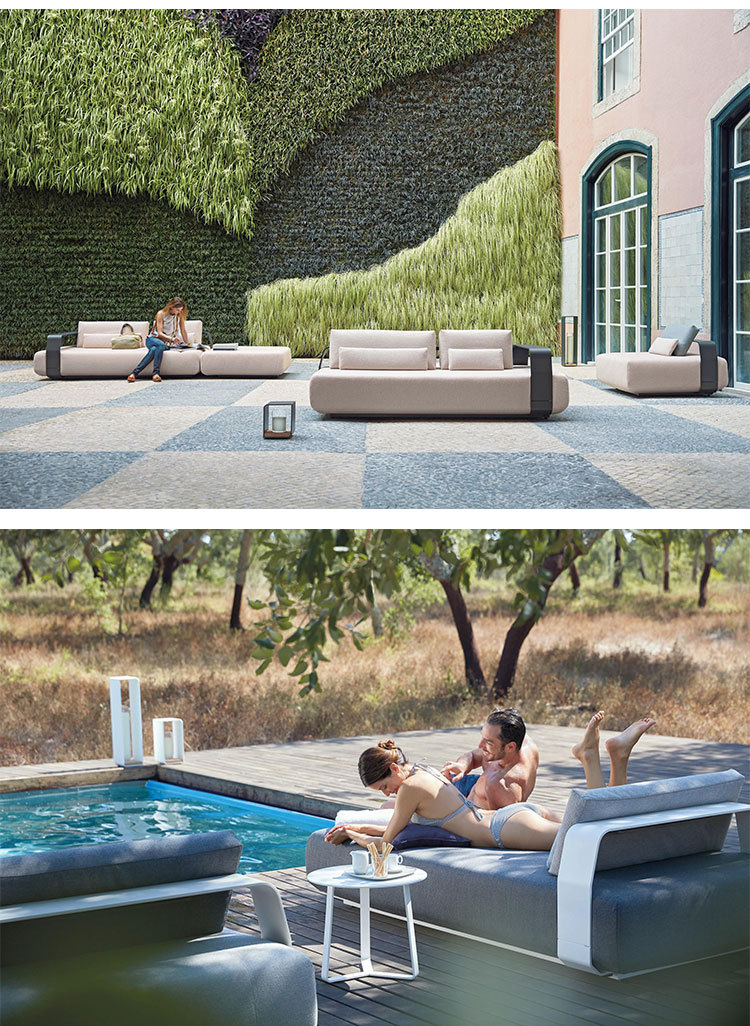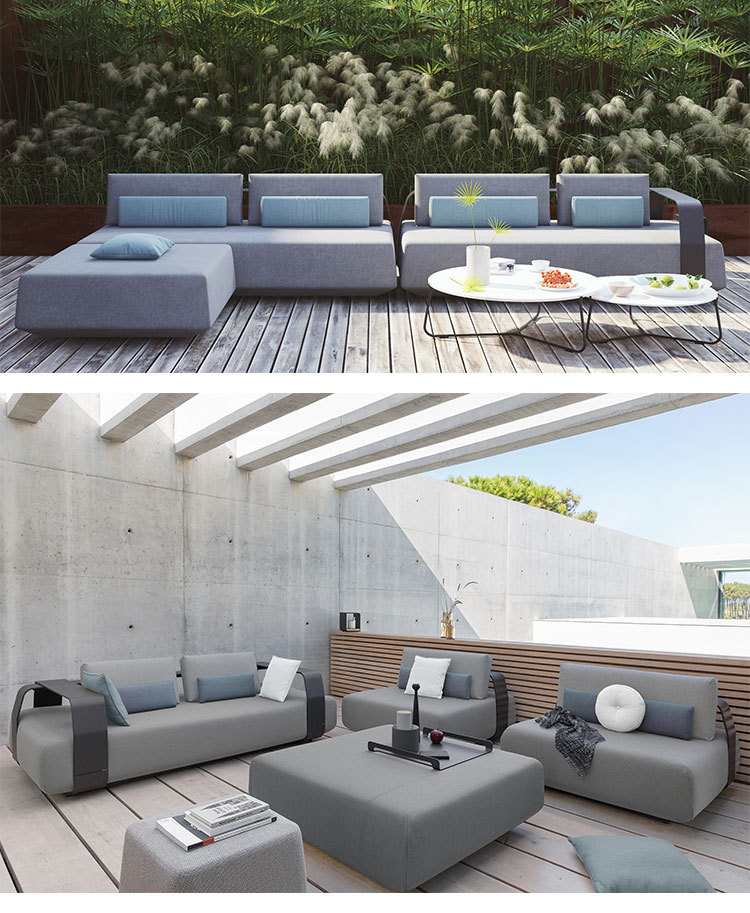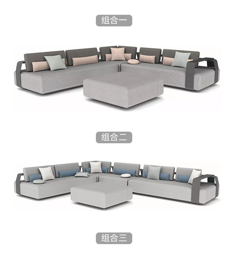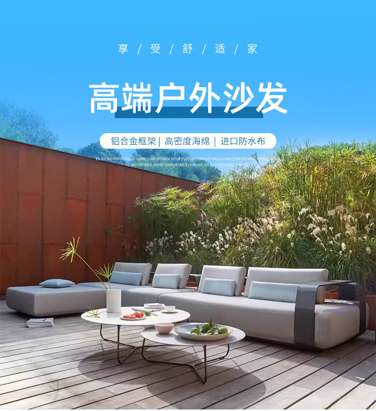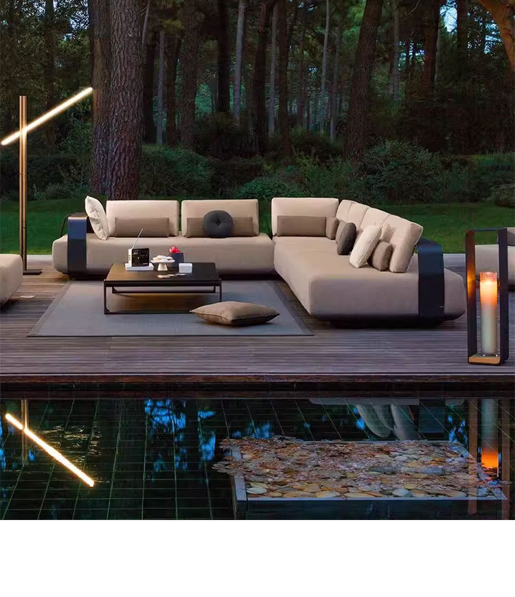 Sofá al aire libre villa casa patio acero inoxidable combinación balcón exposición muebles impermeables mesa de té