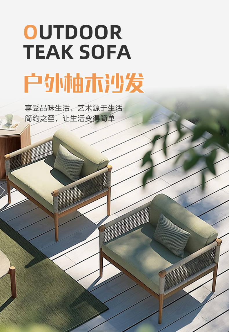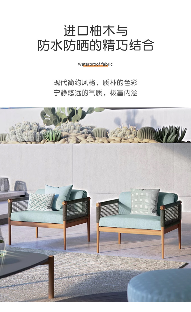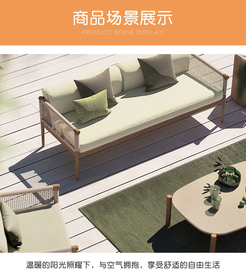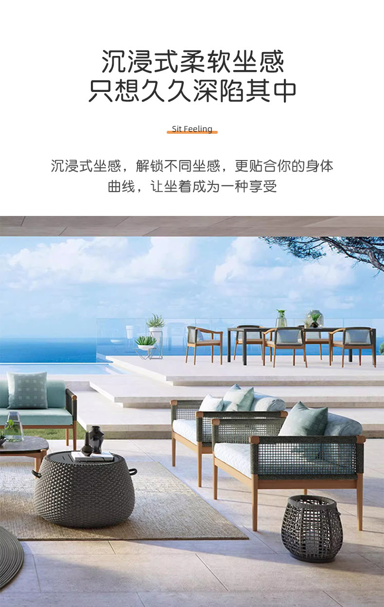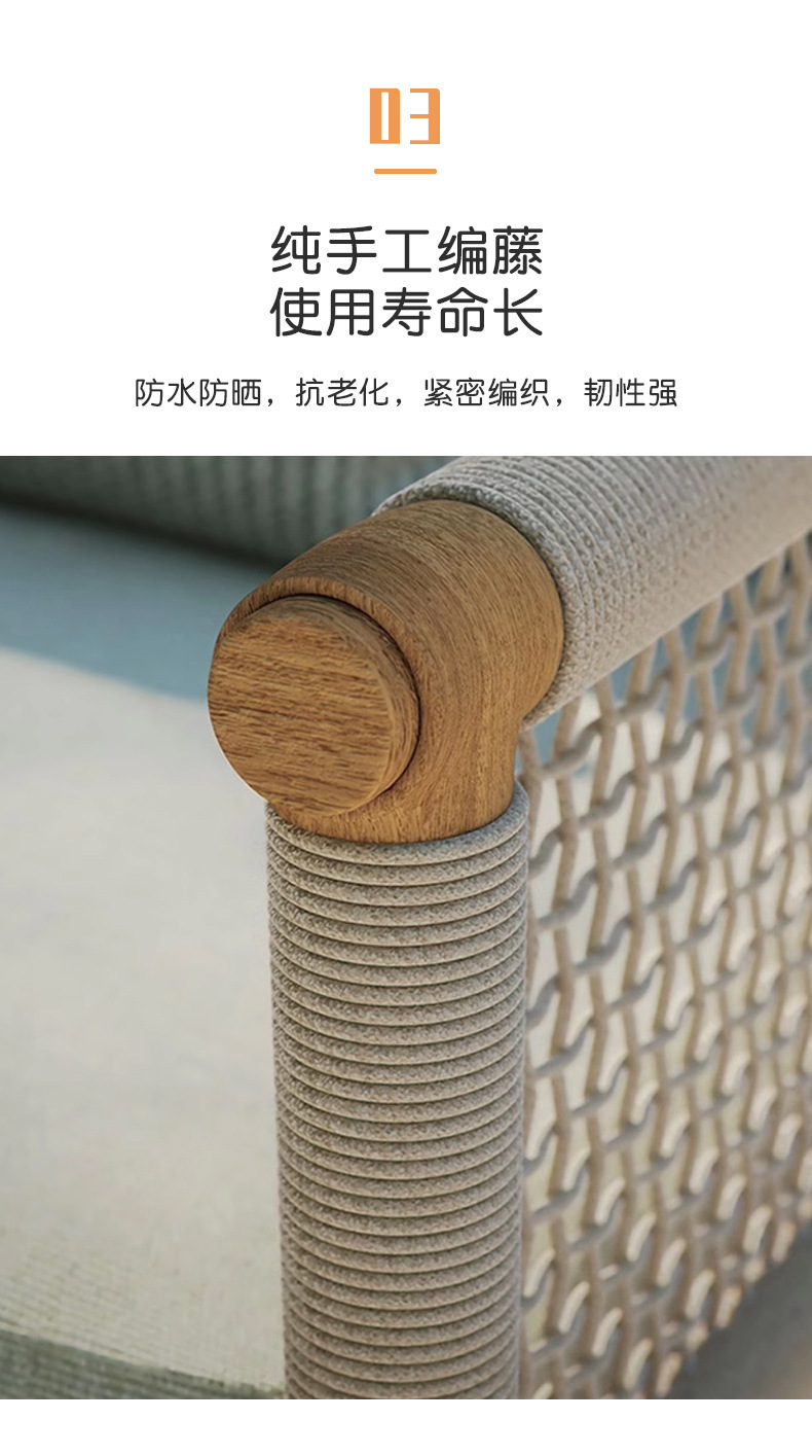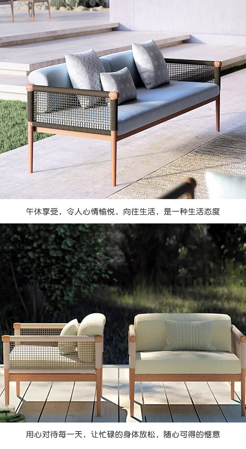 Sofá de caña al aire libre patio villa jardín al aire libre balcón hotel relajado mesa de té de madera combinación de muebles de madera maciza