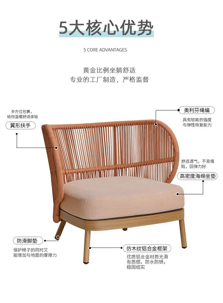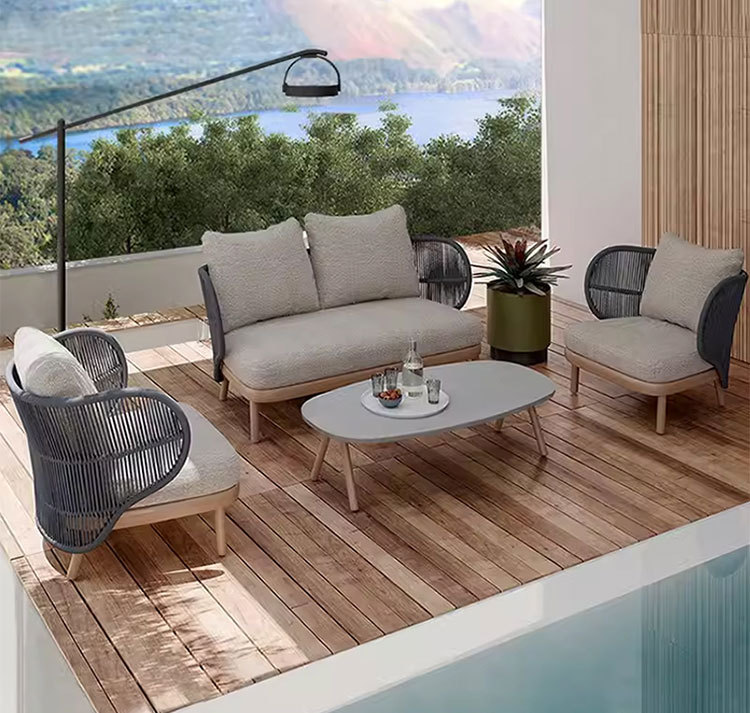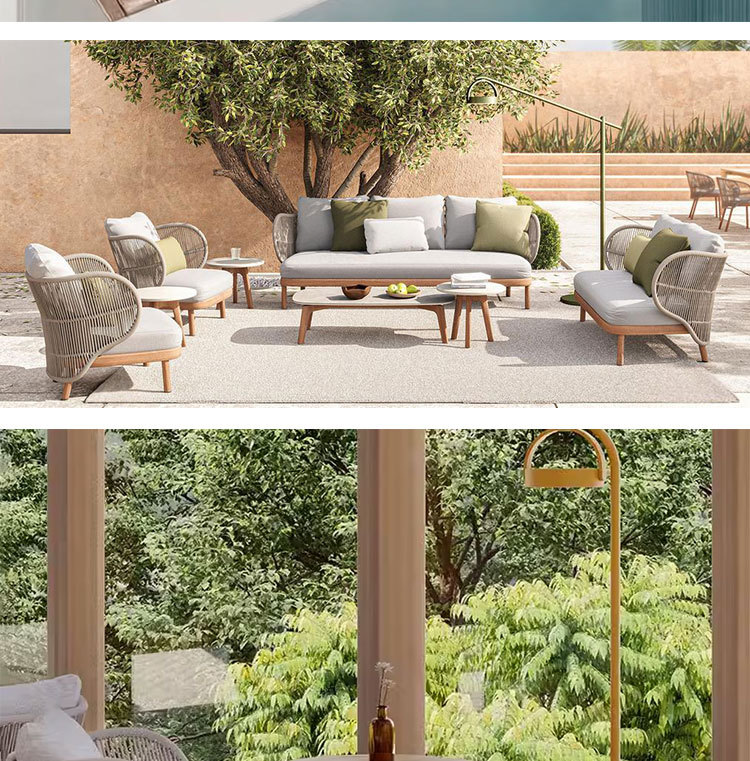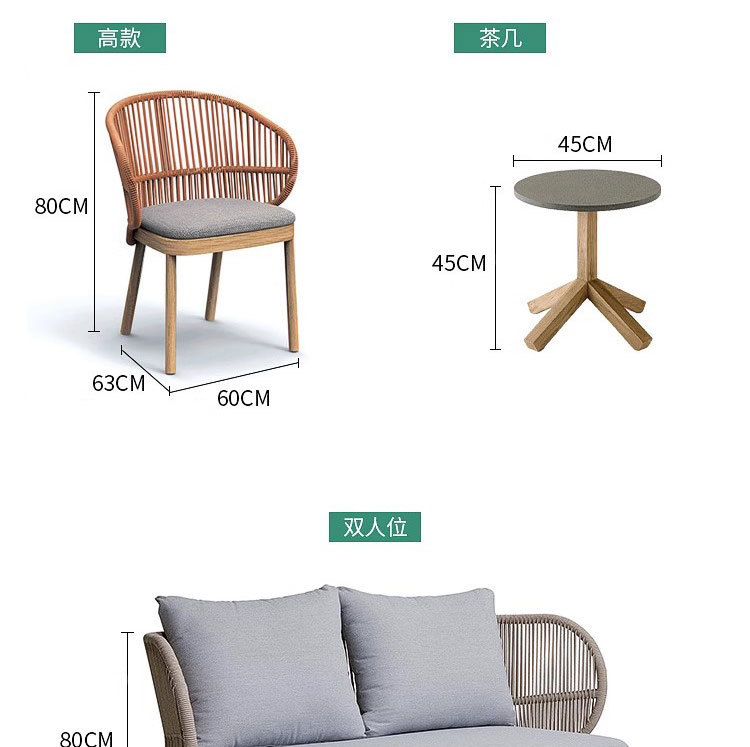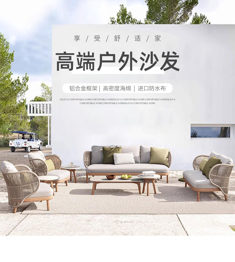 Sofá al aire libre de aleación de aluminio patio jardín ocio cuerda trenzada combinación de casa al aire libre trenzada muebles impermeables y protectores solares