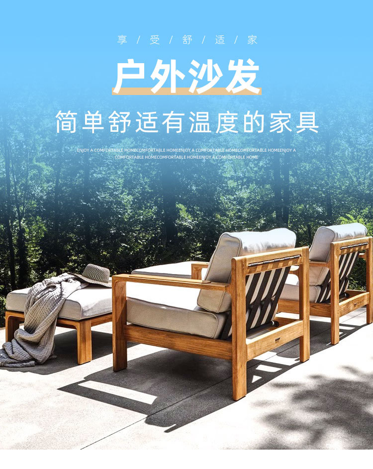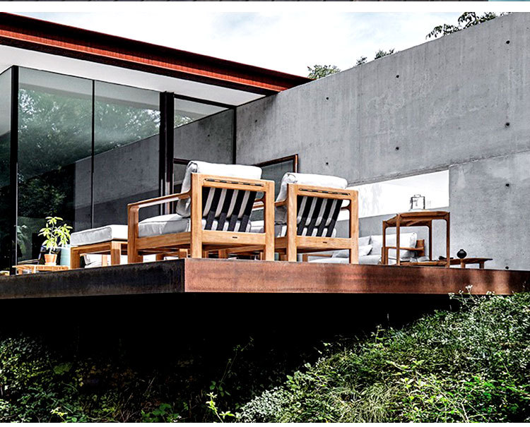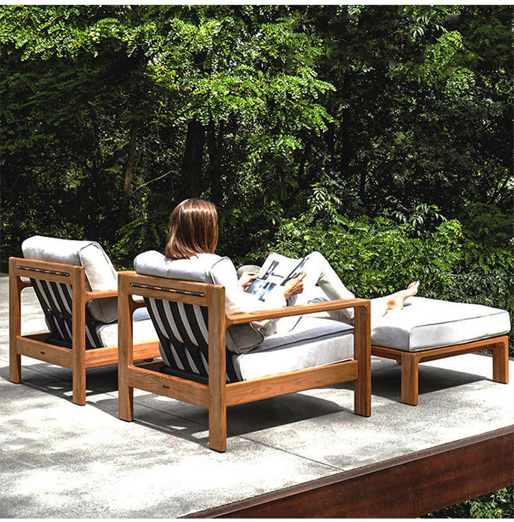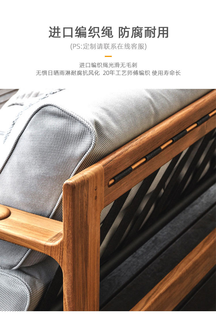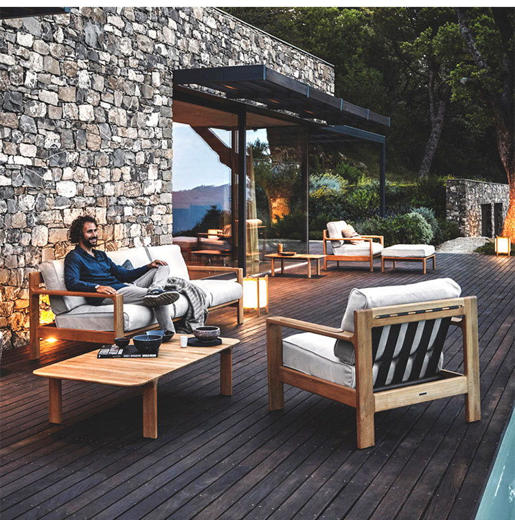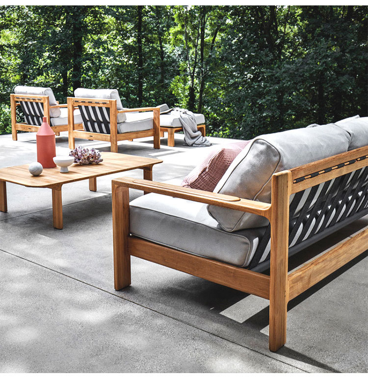 Sofá de madera sólida al aire libre Jardín al aire libre patio ocio mesa de té de teca combinada al aire libre muebles impermeables y protectores solares