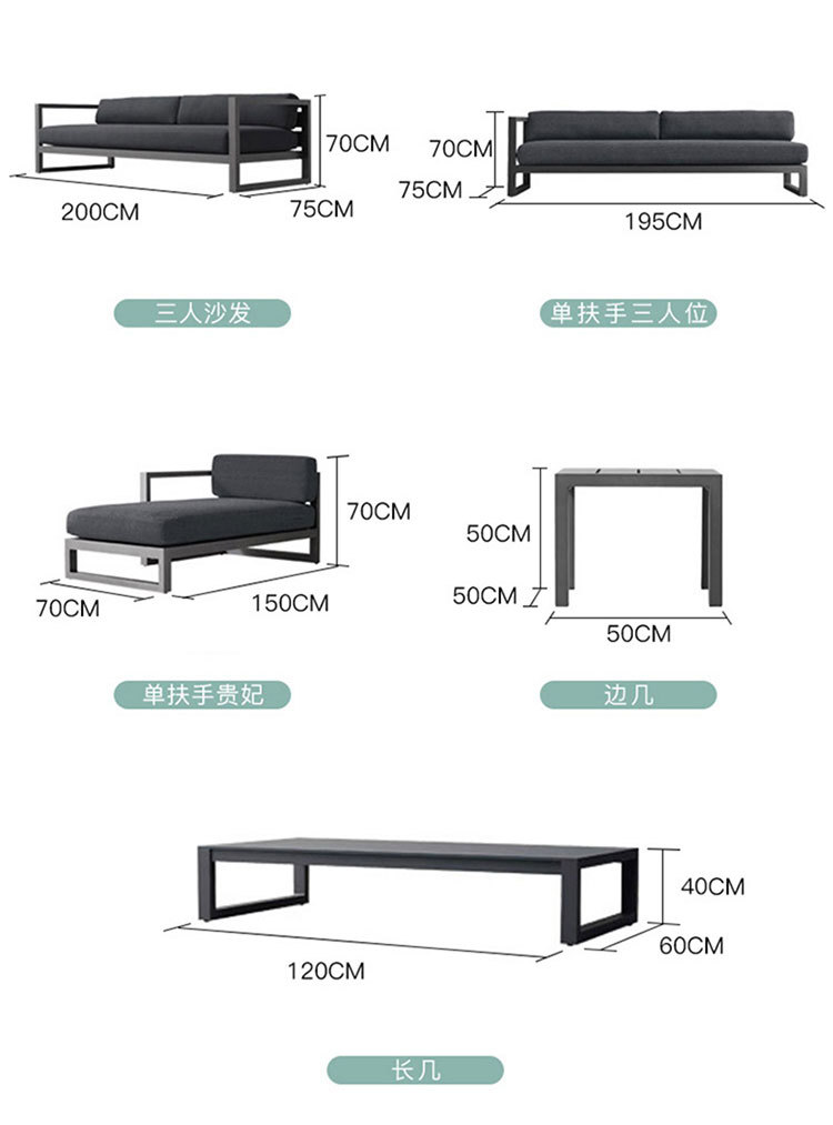 Sofá de aleación de aluminio al aire libre sillón balcón al aire libre jardín patio al aire libre impermeable moderno minimalista combinación de muebles