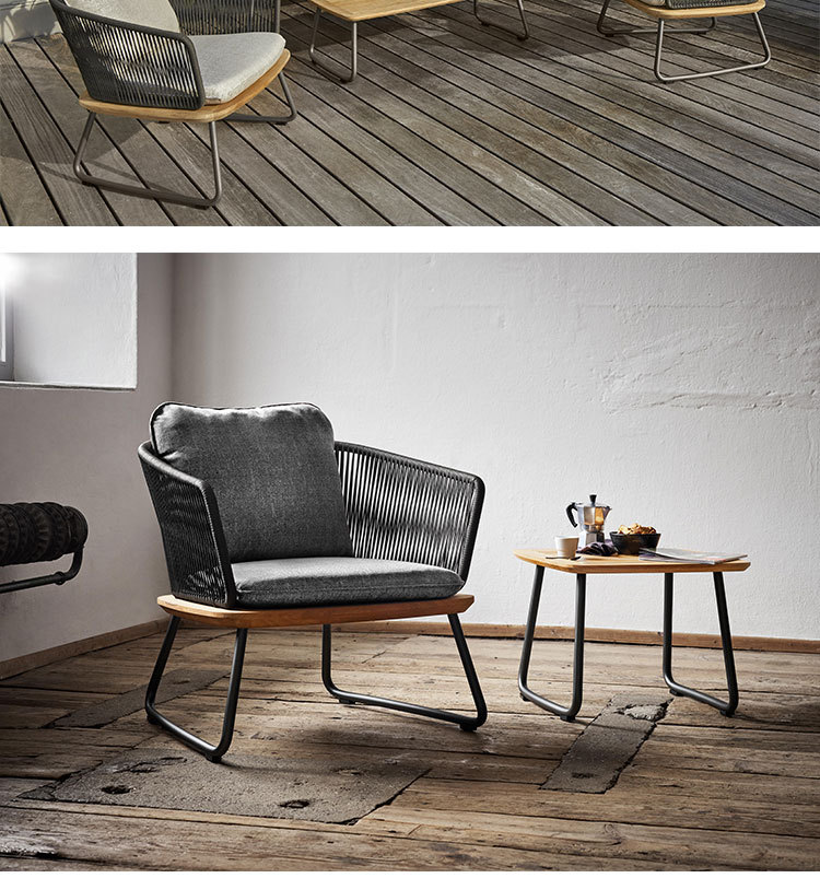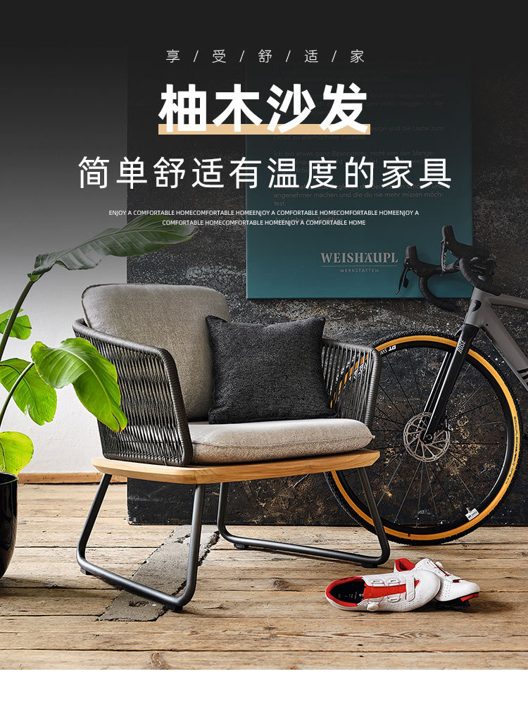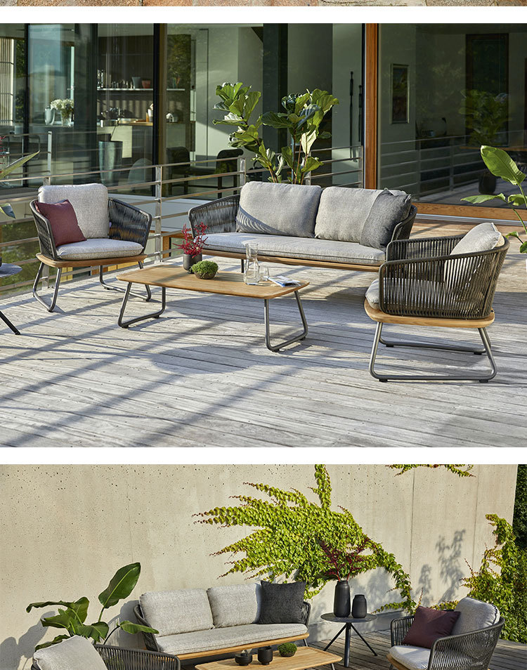 Sofá de ratán de teca al aire libre nórdico, villa de ocio al aire libre, balcón de jardín, combinación de muebles de teca de ratán a prueba de agua