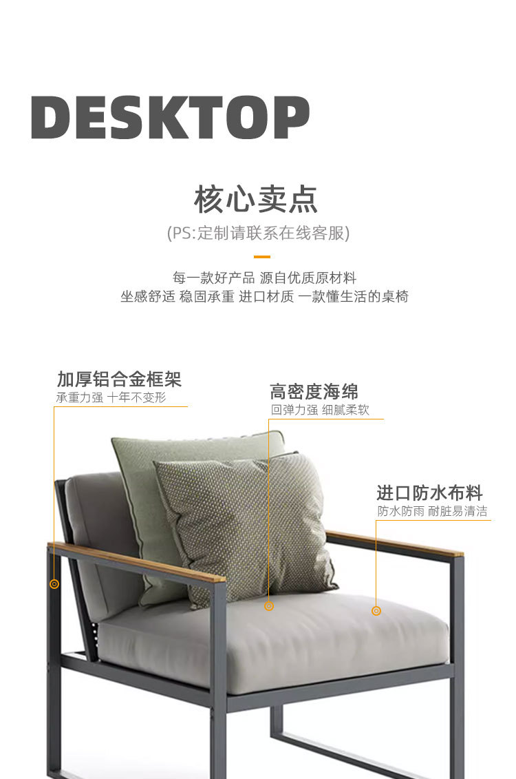 Sofá de aleación de aluminio al aire libre patio balcón al aire libre impermeable hotel de alojamiento solar silla de jardín muebles al aire libre