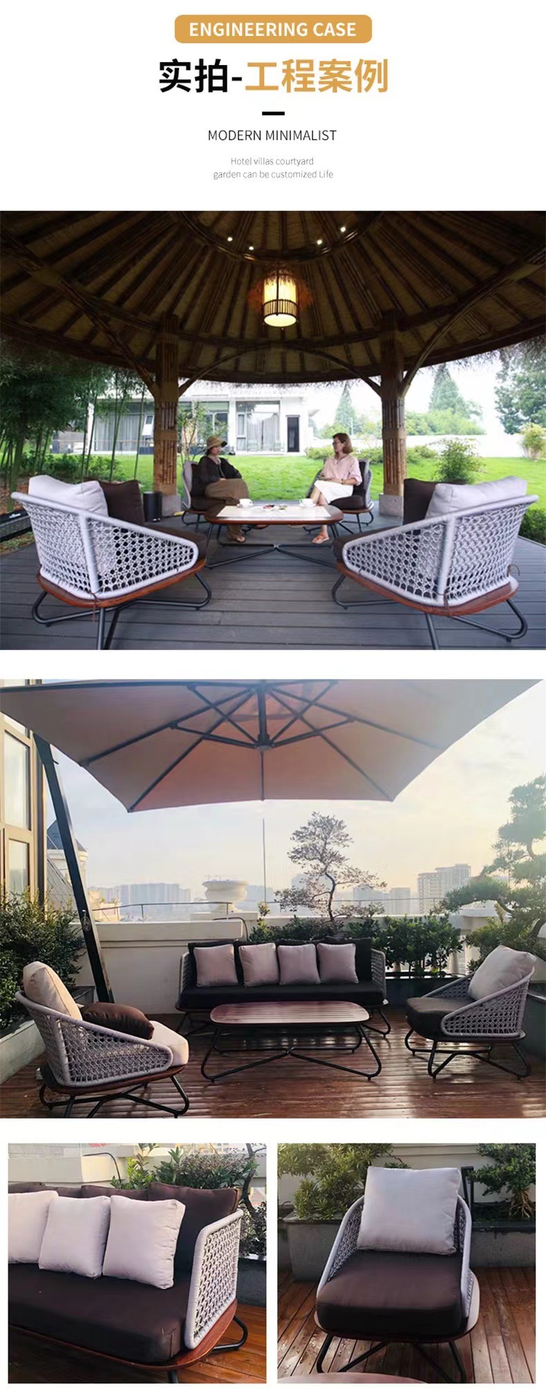 Diseñador de sofá de caña casual nórdico al aire libre madera sólida de alta gama villa patio jardín terraza sofá impermeable