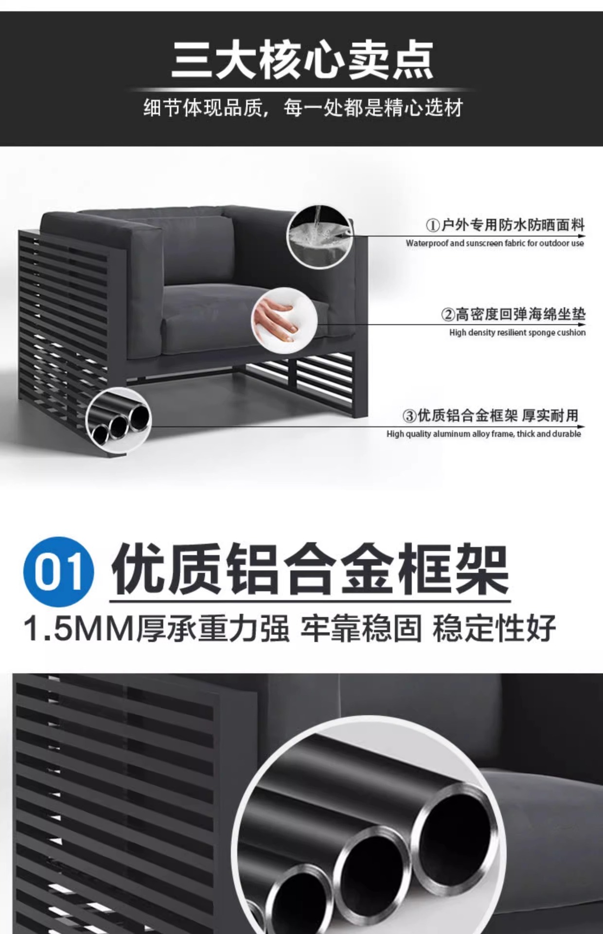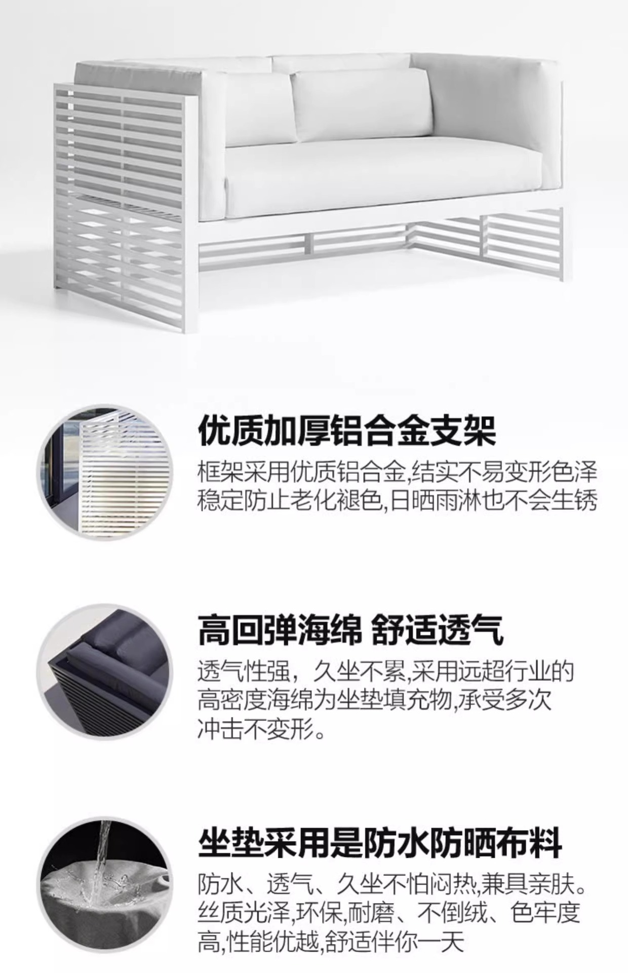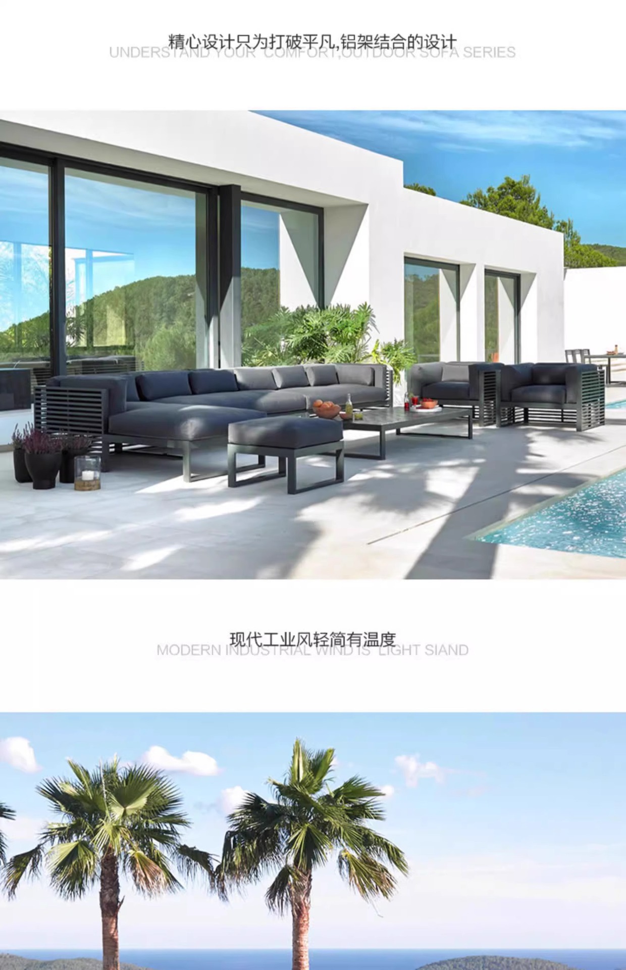 Sofá de ocio al aire libre jardín patio solárium terraza villa hotel exterior impermeable protector solar sofá de aleación de aluminio