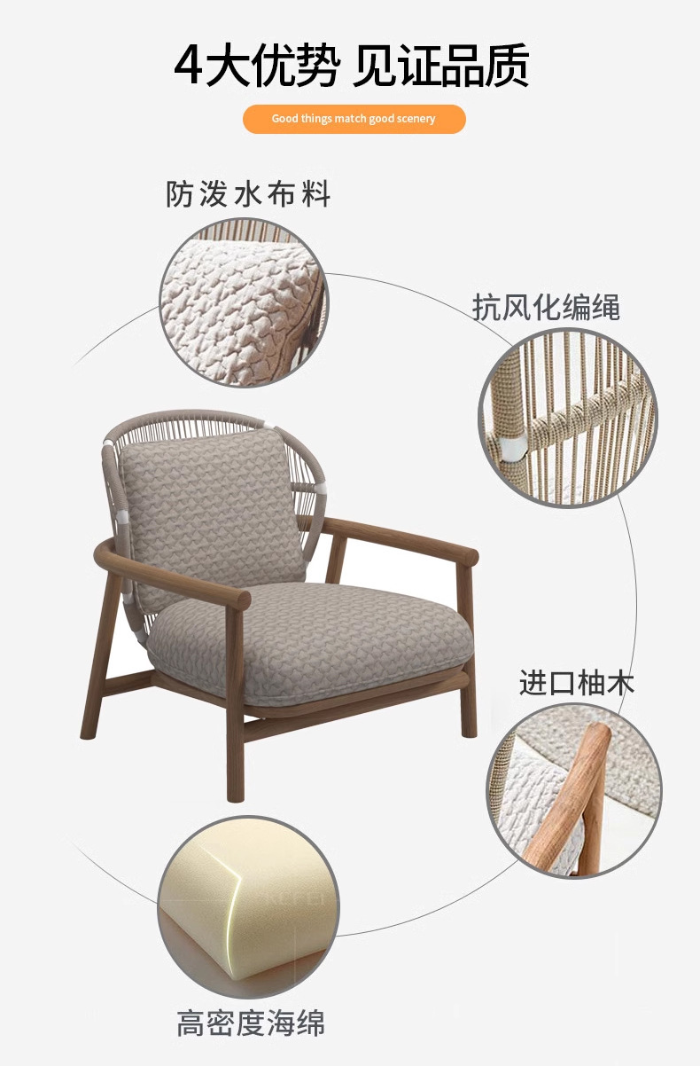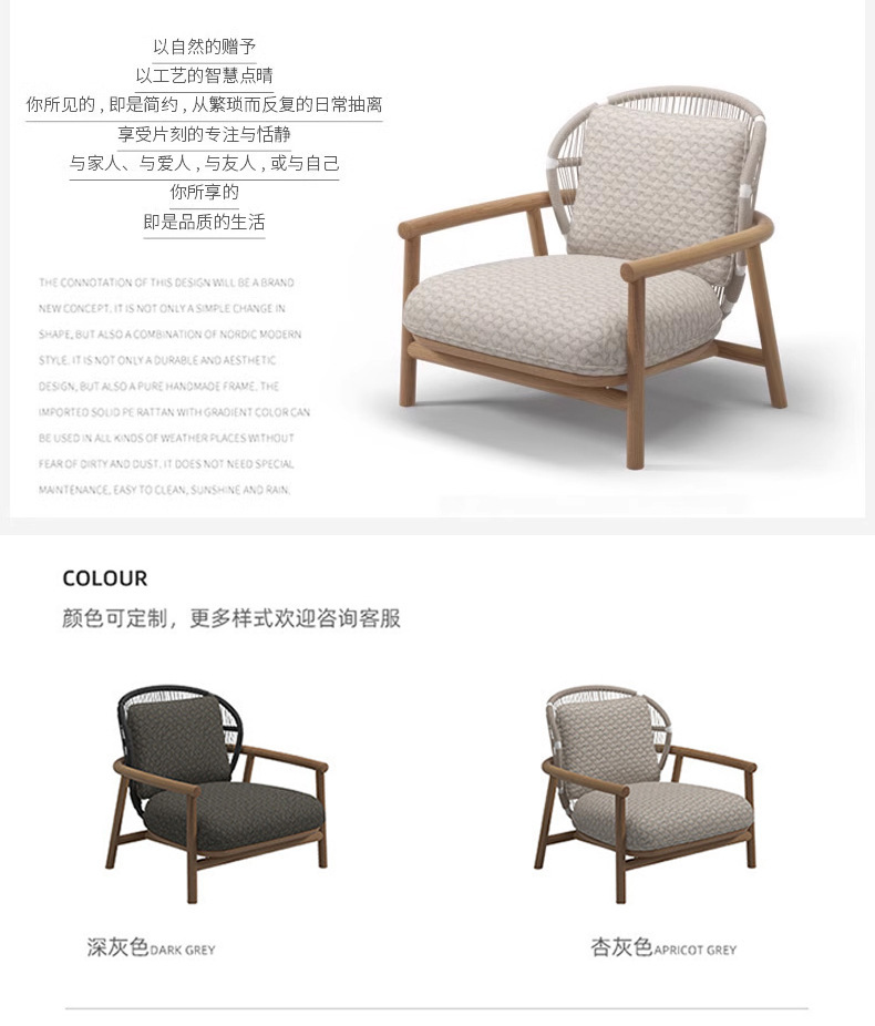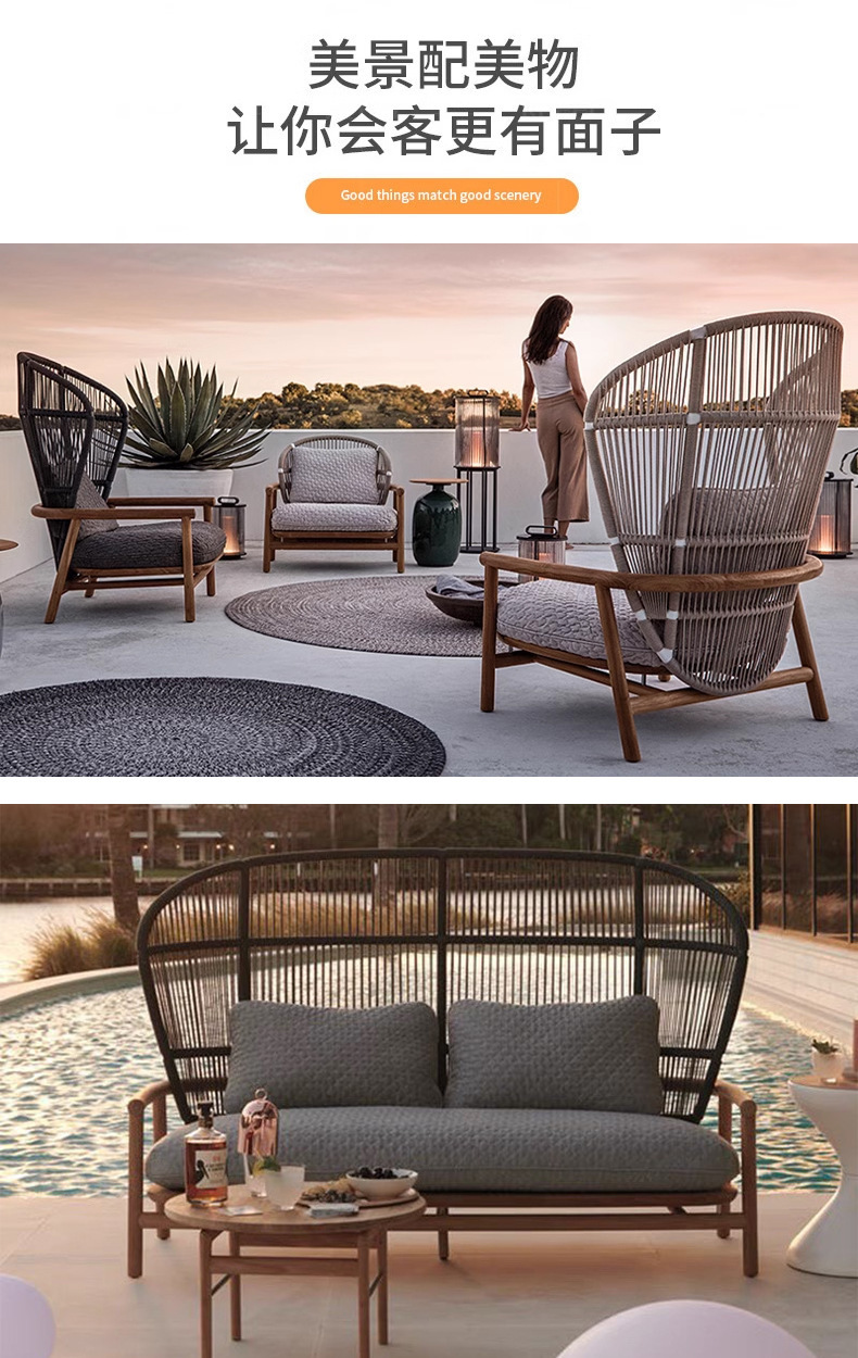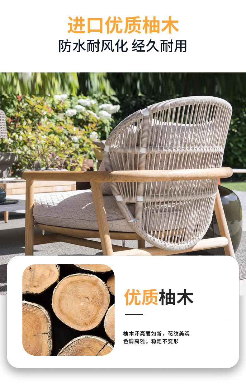 Sofá de madera maciza al aire libre Villa patio jardín impermeable silla de caña ocio muebles balcón sofá creativo
