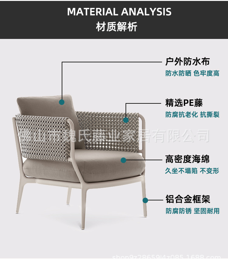 Sofá al aire libre a prueba de agua y protección solar jardín patio balcón sofá silla sola persona sofá de caña mesa de té combinación
