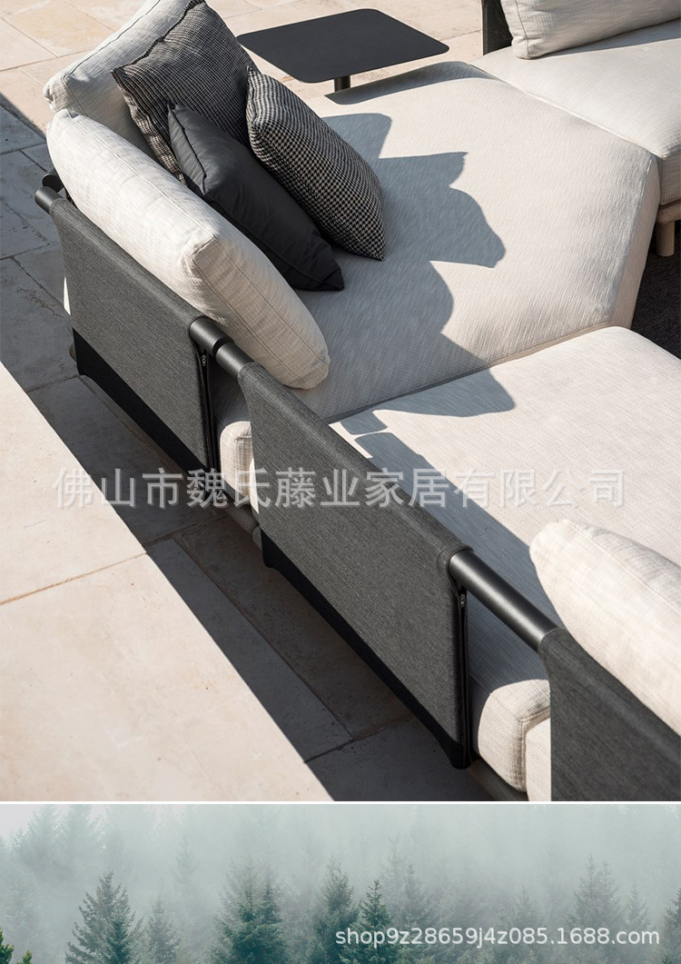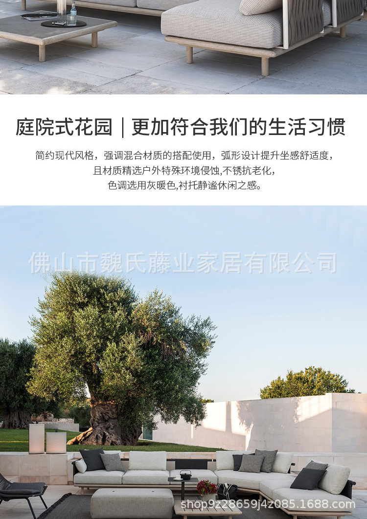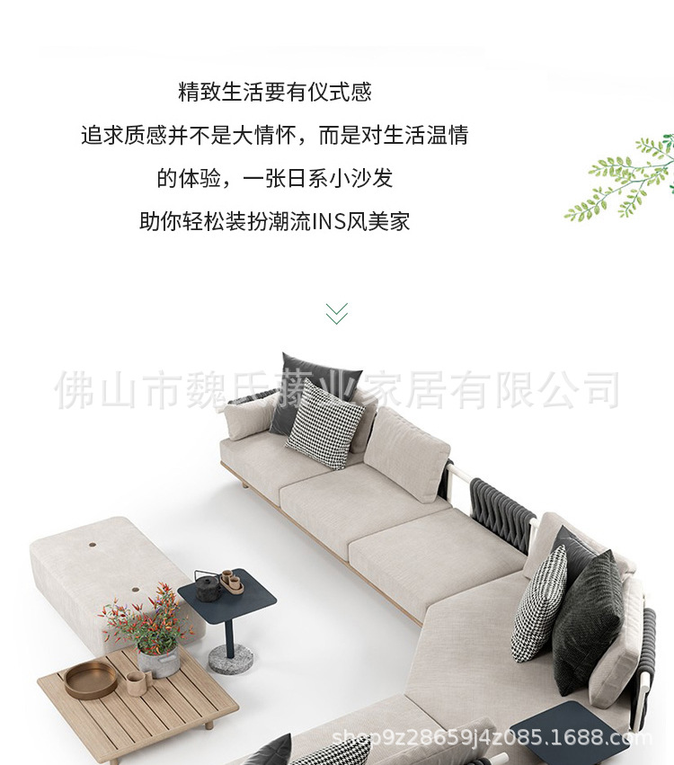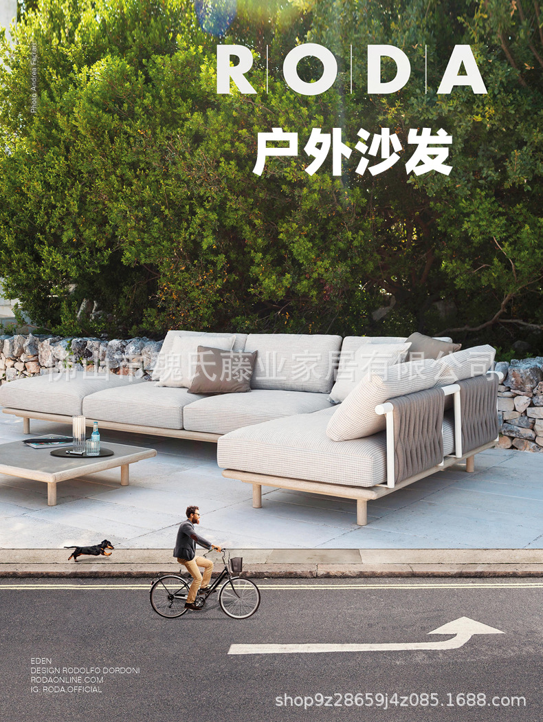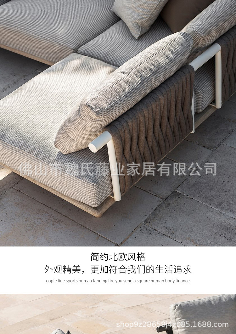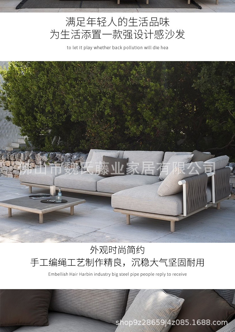 Sofá de tejido de cuerda al aire libre a prueba de agua y protección solar villa patio sofá de vid de madera sólida sofá de esquina combinación de mesa de té
