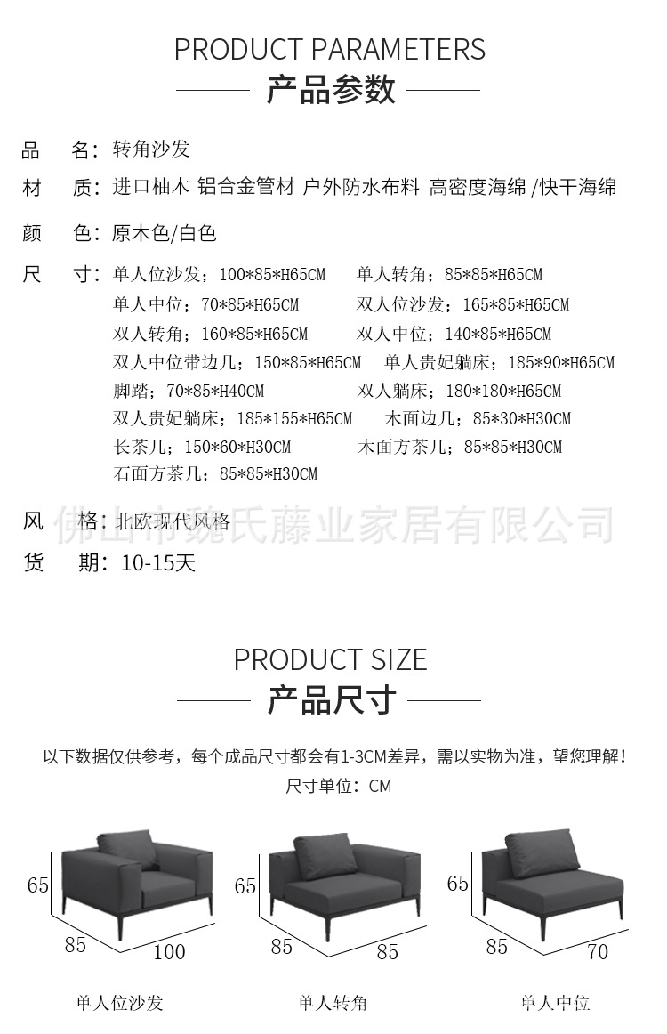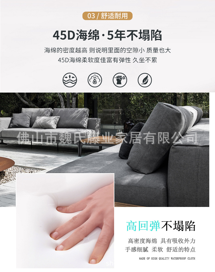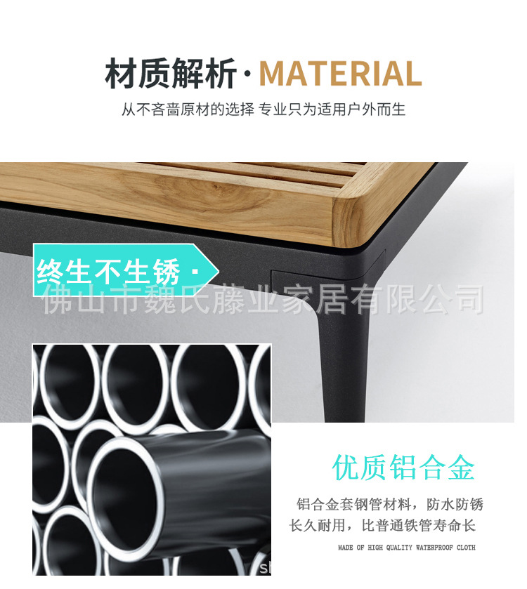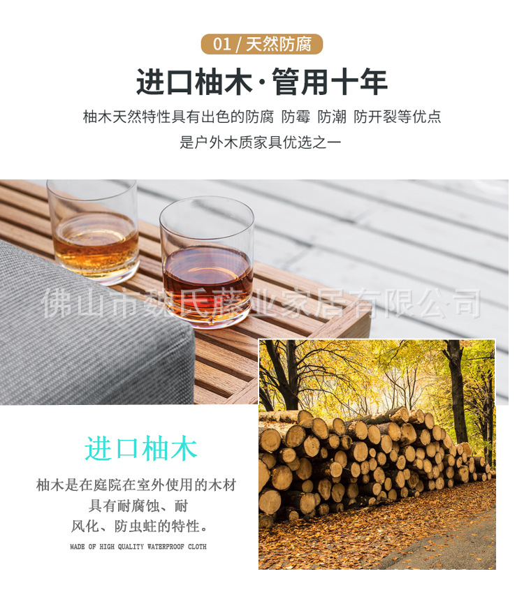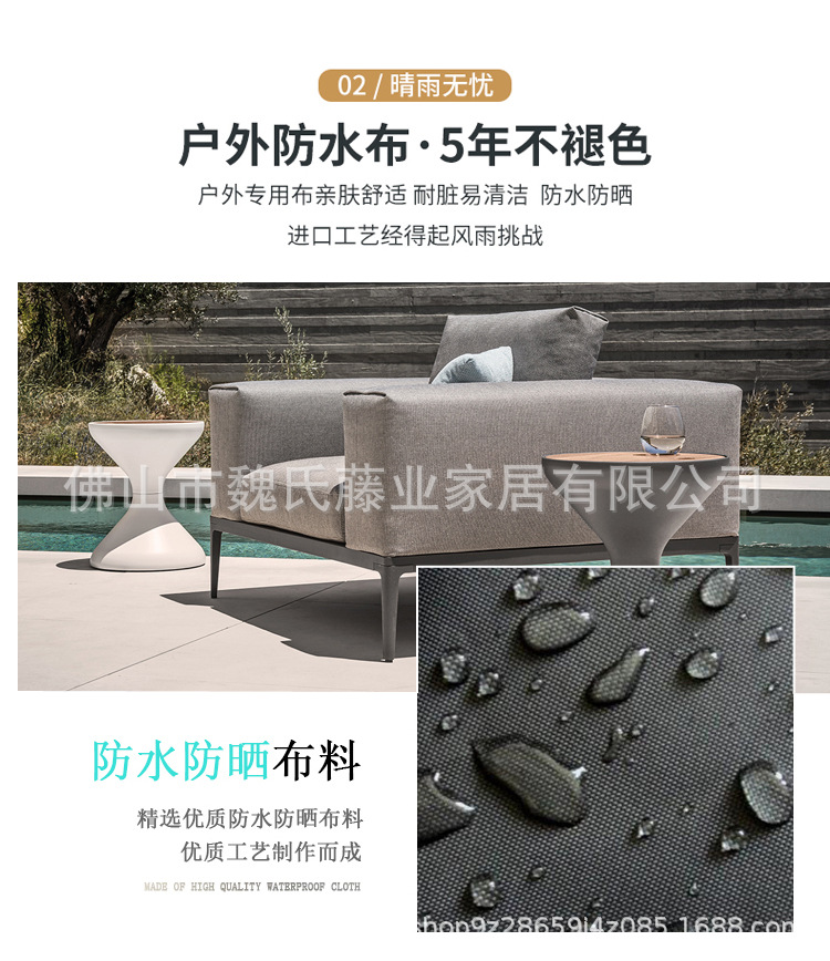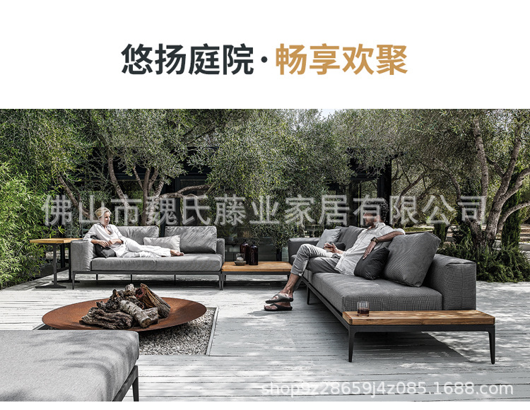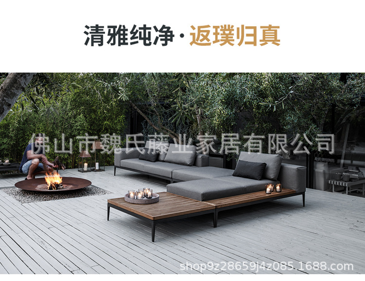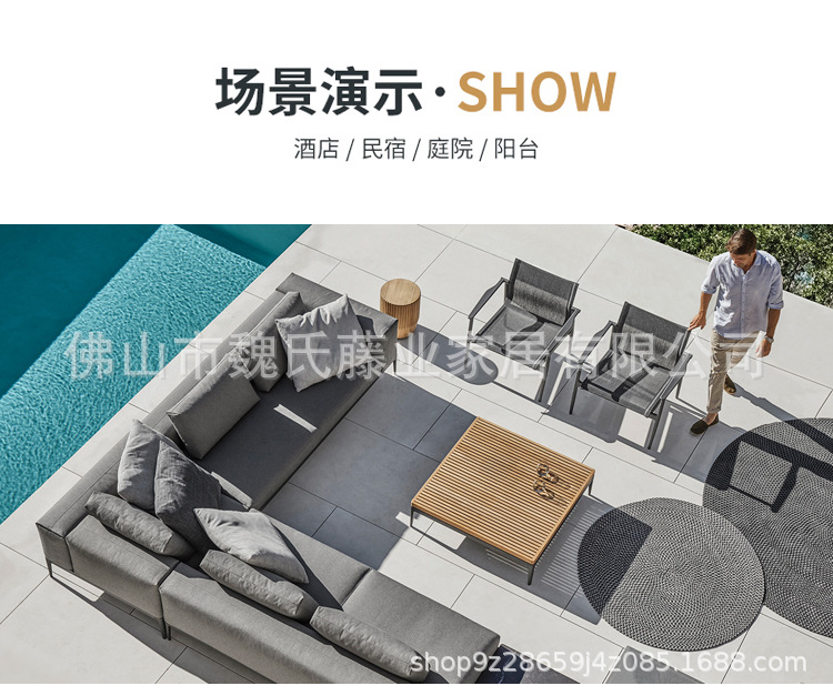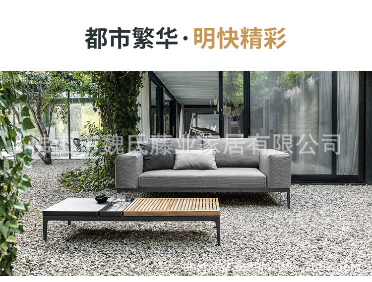 Sofá al aire libre impermeable protección solar patio de villa muebles de teca al aire libre combinación de sofá de esquina de aleación de aluminio moderno