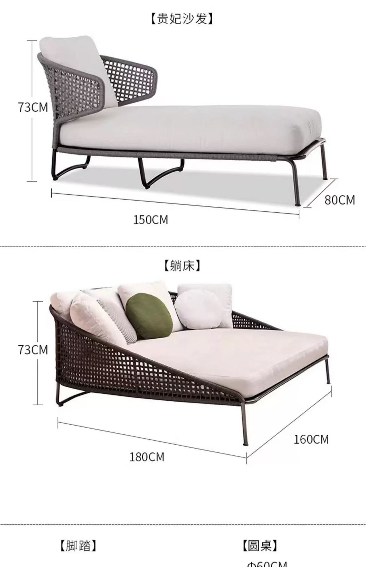 | Color | Sofá individual (con barandilla), sofá individual (sin barandilla), sofá doble, sofá de tres personas, cama tumbada, posición de concubina, pedal, Mesa de café de pizarra de 120cm, Mesa de café de madera maciza de 120cm, Mesa de café de pizarra de 60cm |