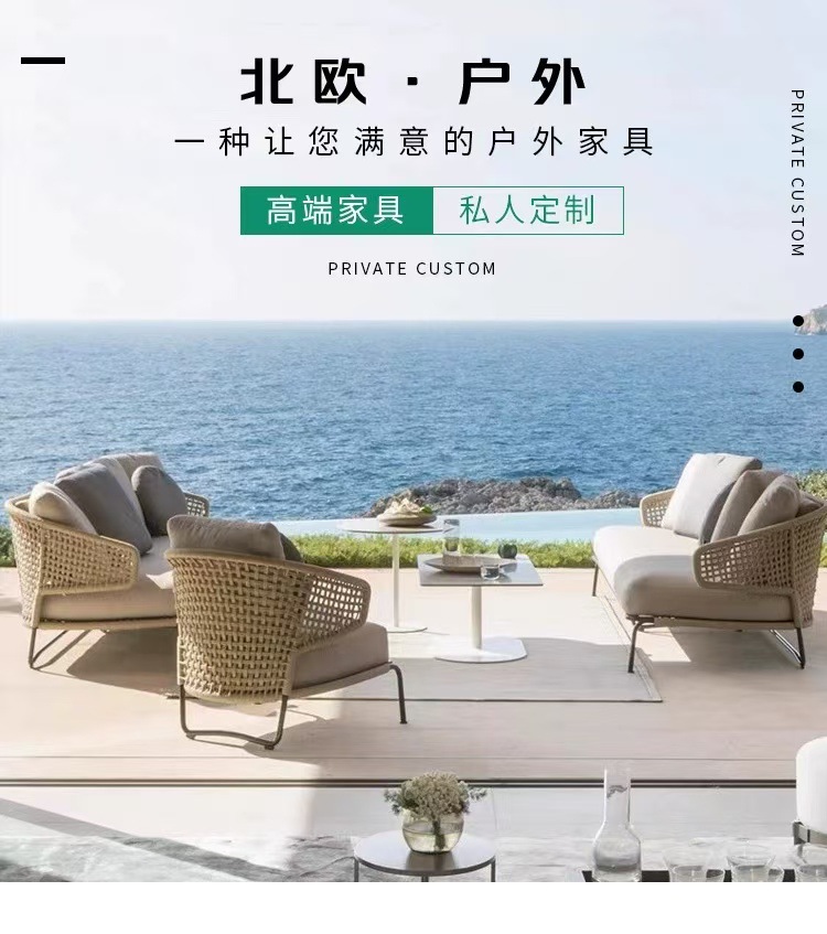 sofá de caña al aire libre patio villa silla de caña impermeable de tres piezas conjunto de casa modelo balcón combinación de sofá de ocio