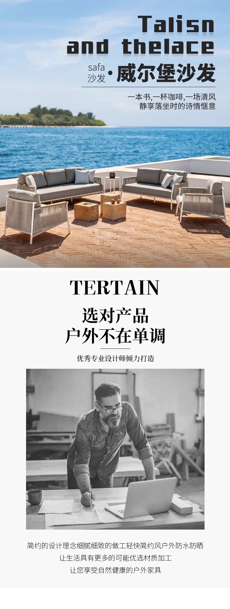Sofá de caña al aire libre a prueba de agua y protección solar patio al aire libre ocio balcón sofá combinación de caña silla muebles de jardín