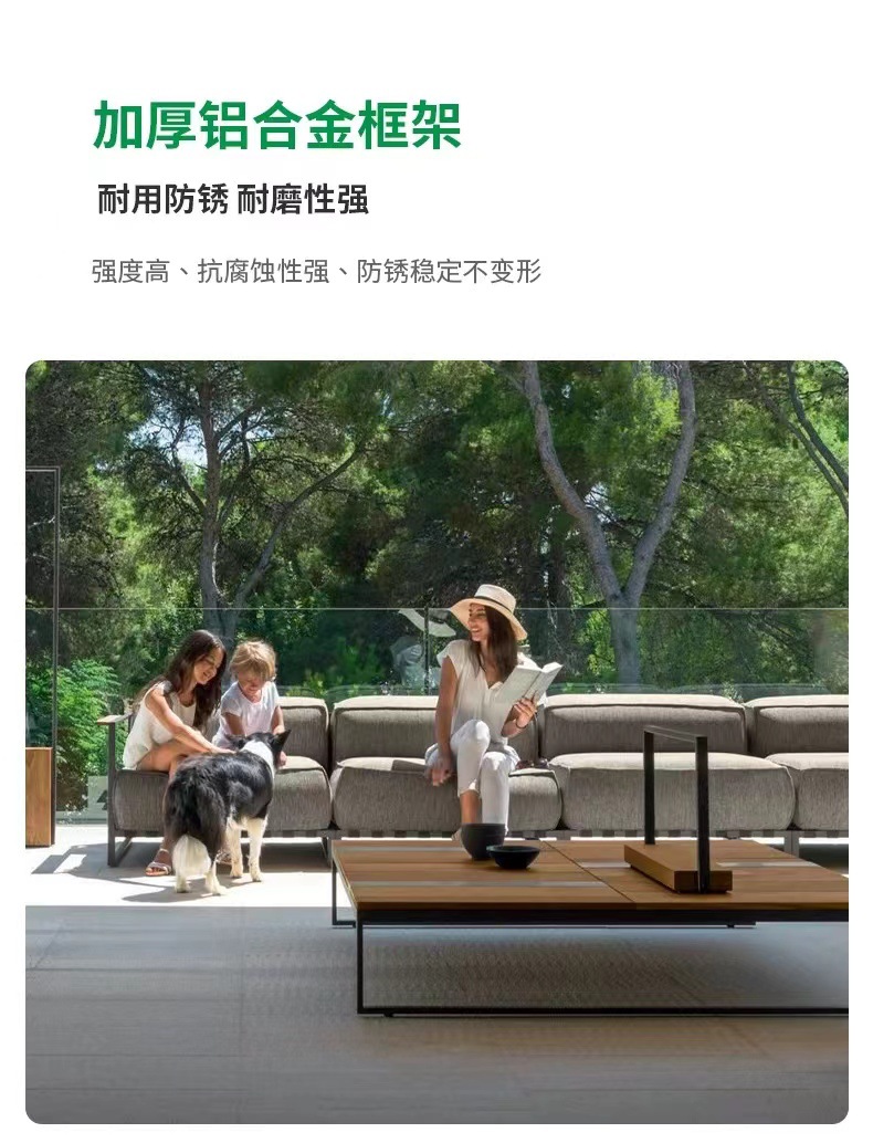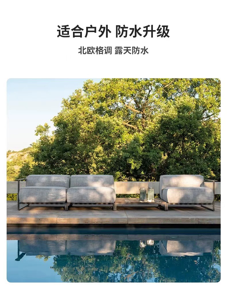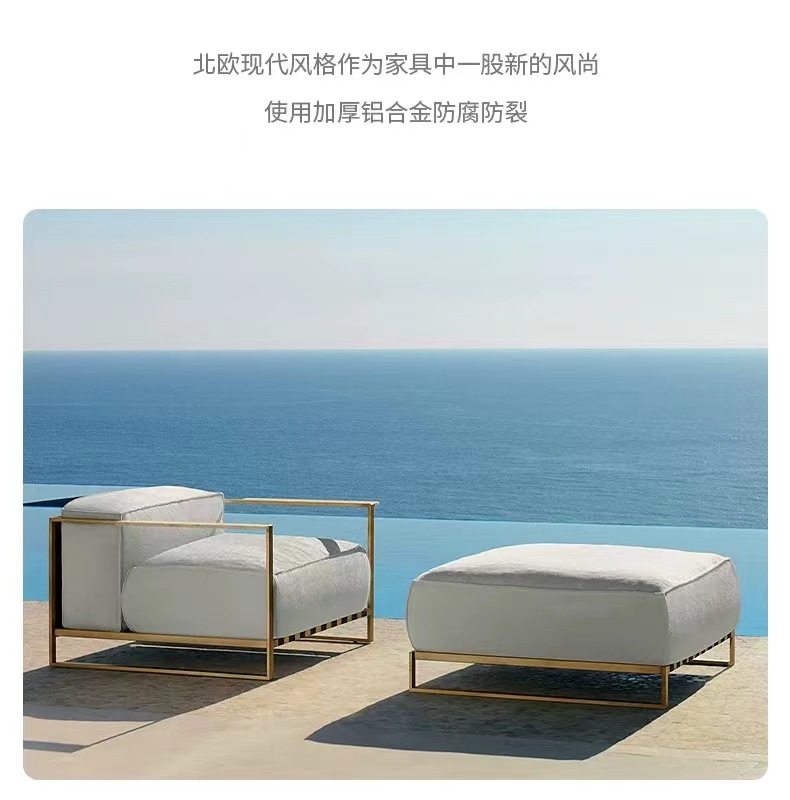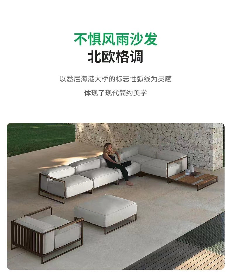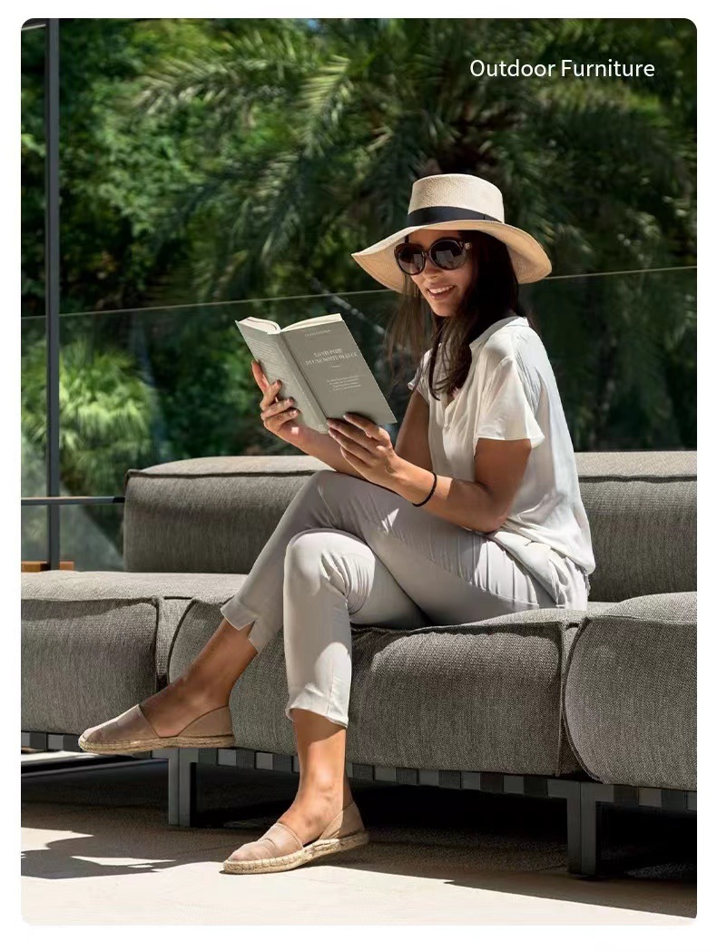 Muebles al aire libre de aluminio de aluminio proyecto hotelero villa de jardín terraza suite patio sofá en forma de L nórdico