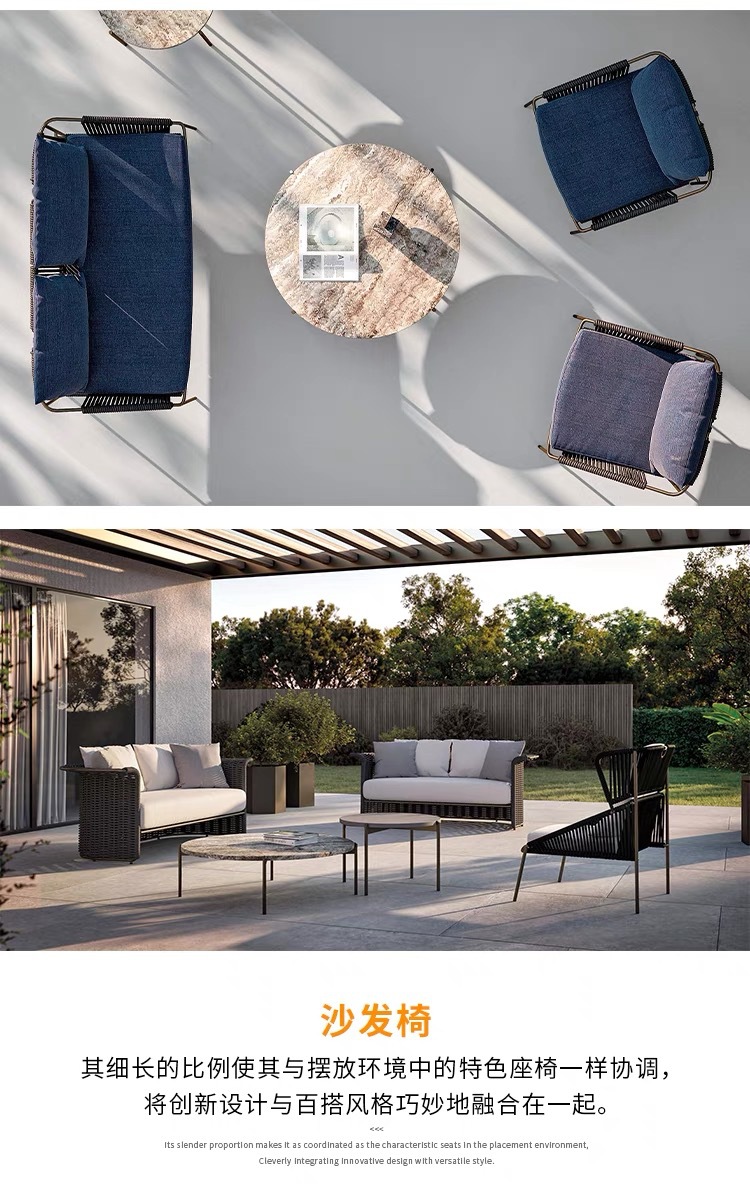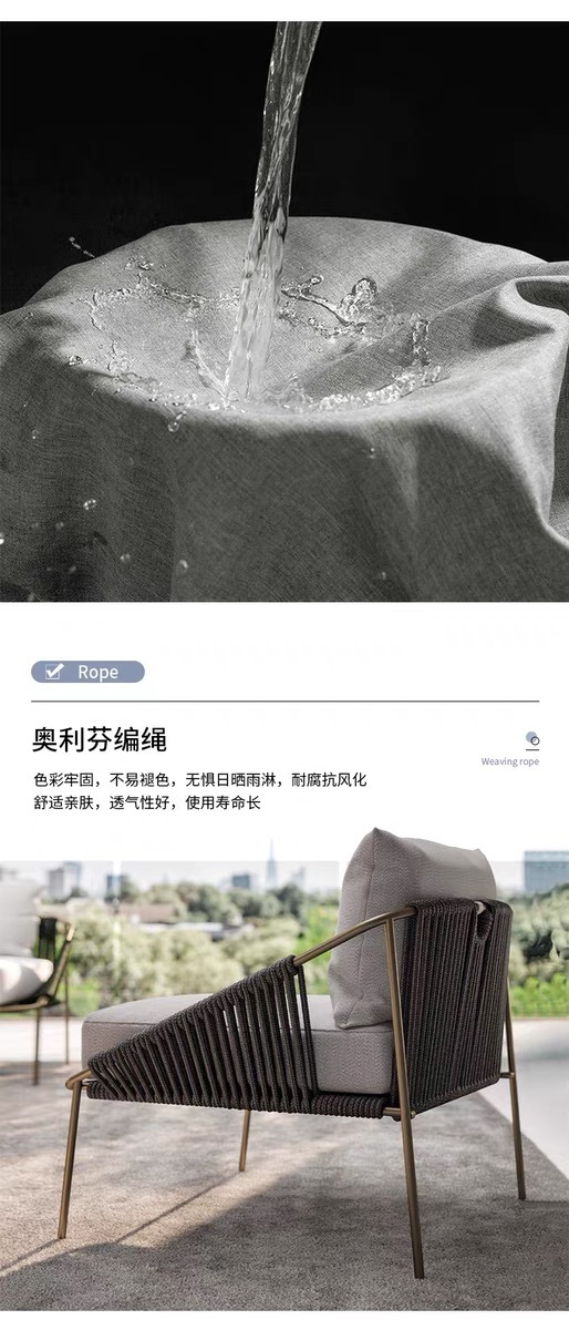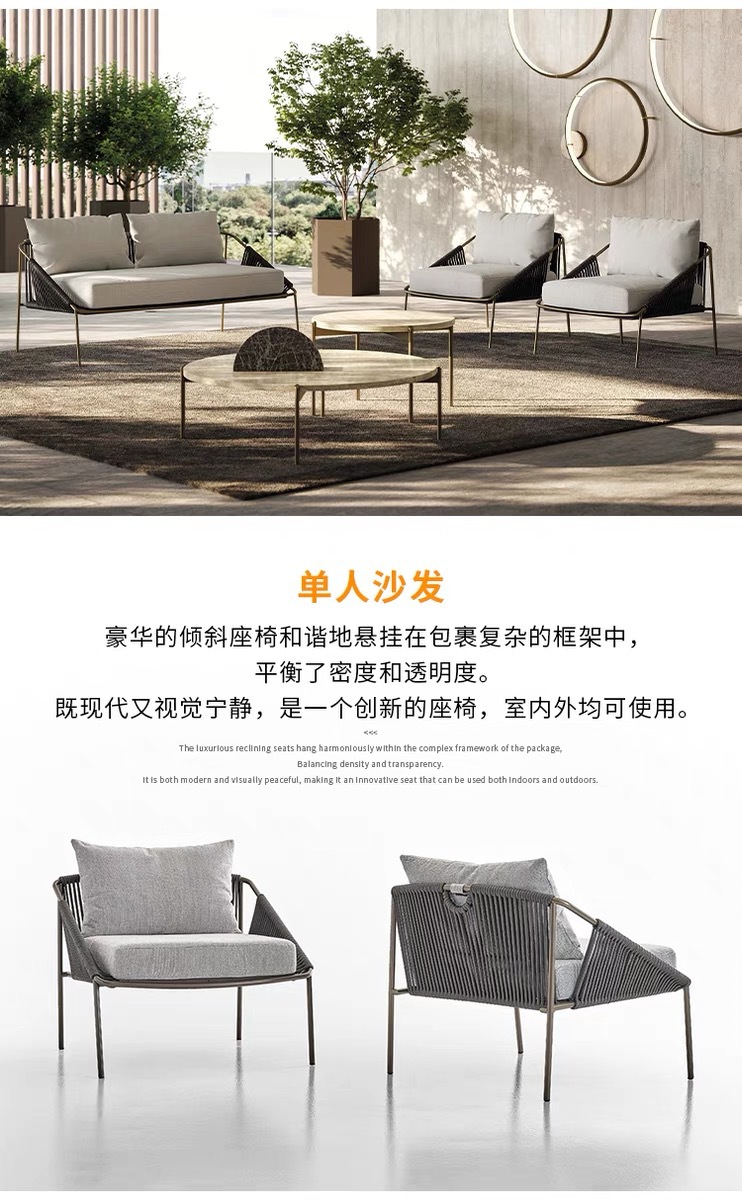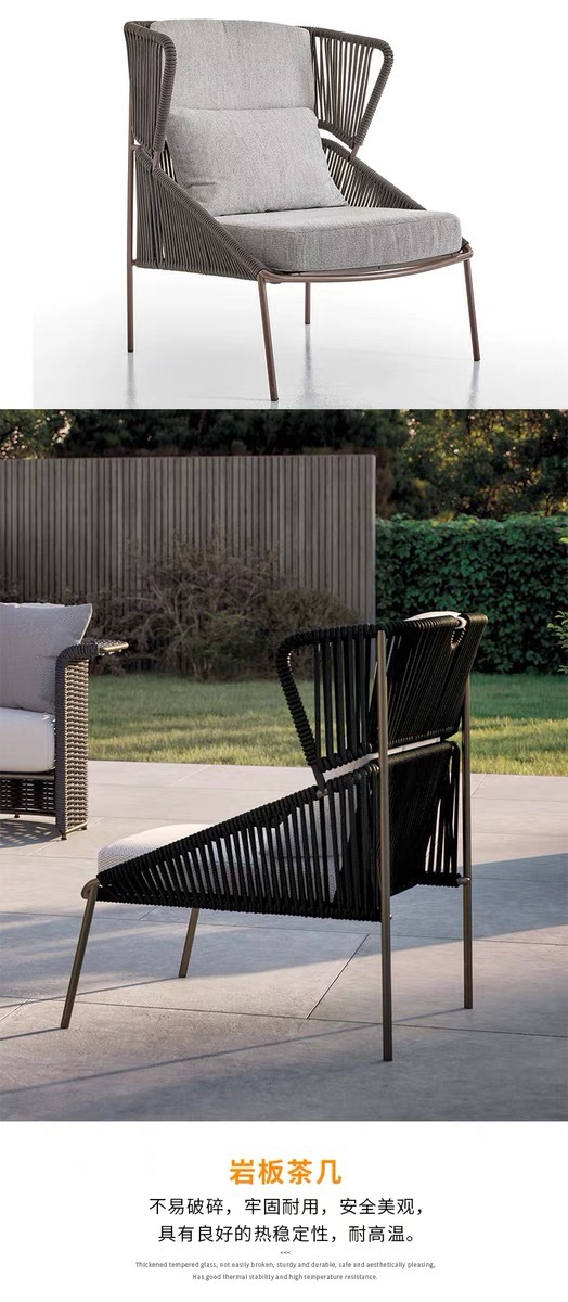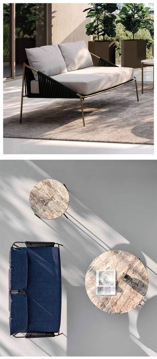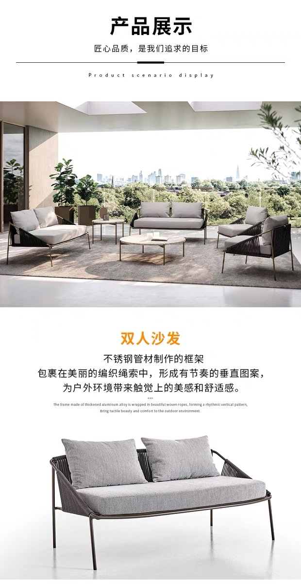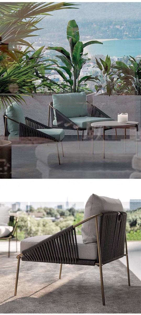 Combinación de sofá de caña al aire libre a prueba de agua y protección solar patio hotel silla de caña terraza sala de sol muebles de cuerda trenzada estilo nórdico