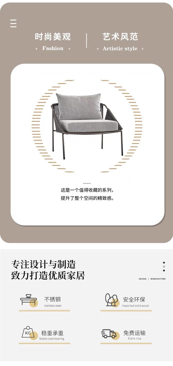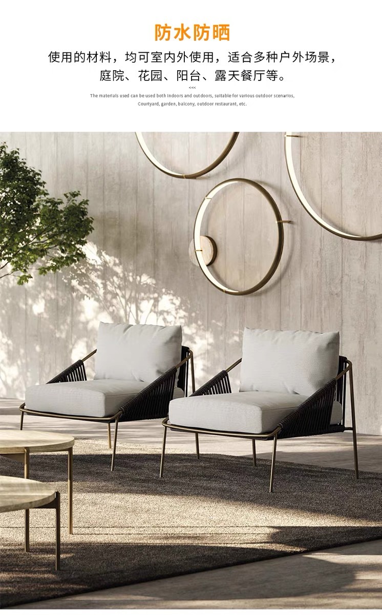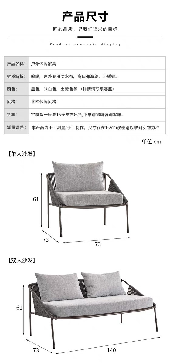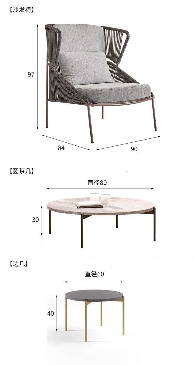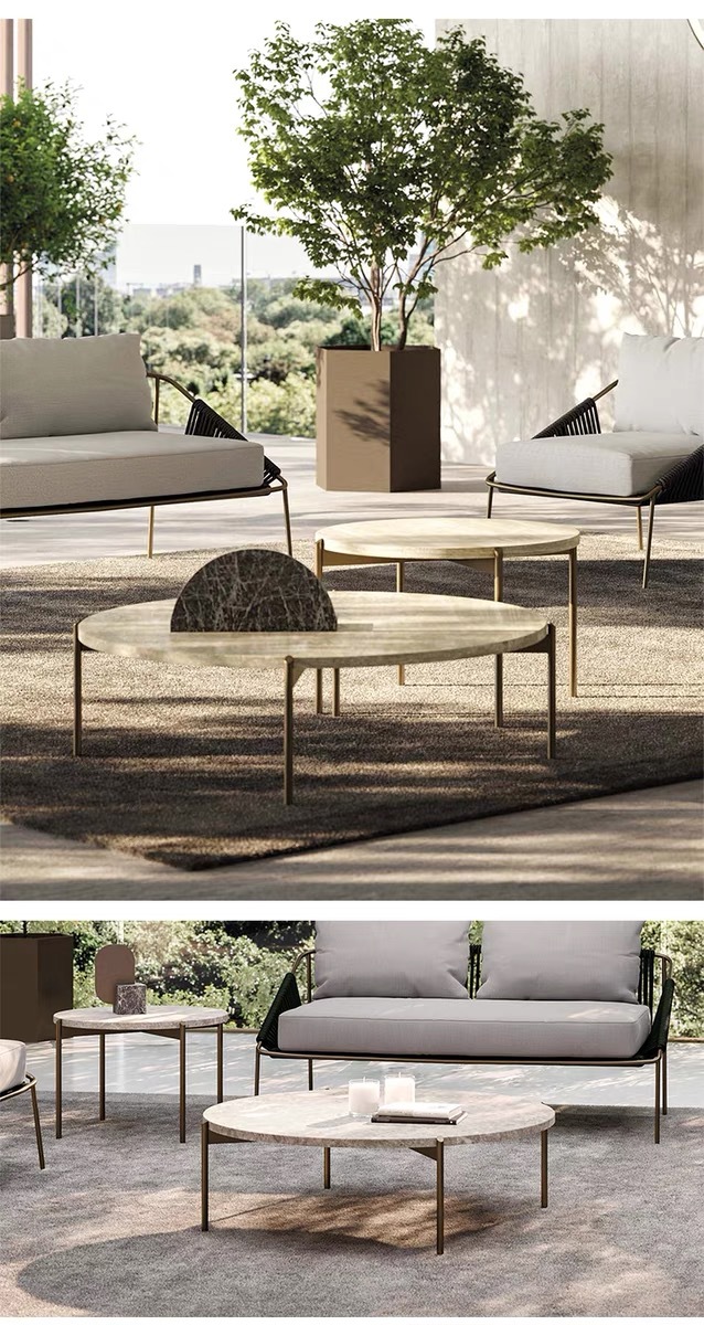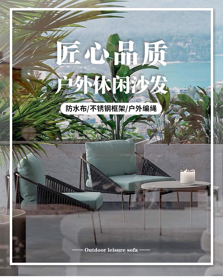 Combinación de sofá de caña al aire libre a prueba de agua y protección solar patio hotel silla de caña terraza sala de sol muebles de cuerda trenzada estilo nórdico