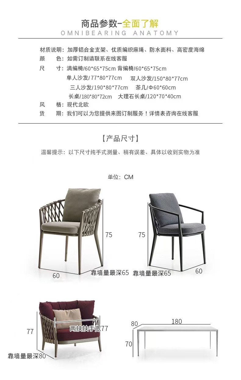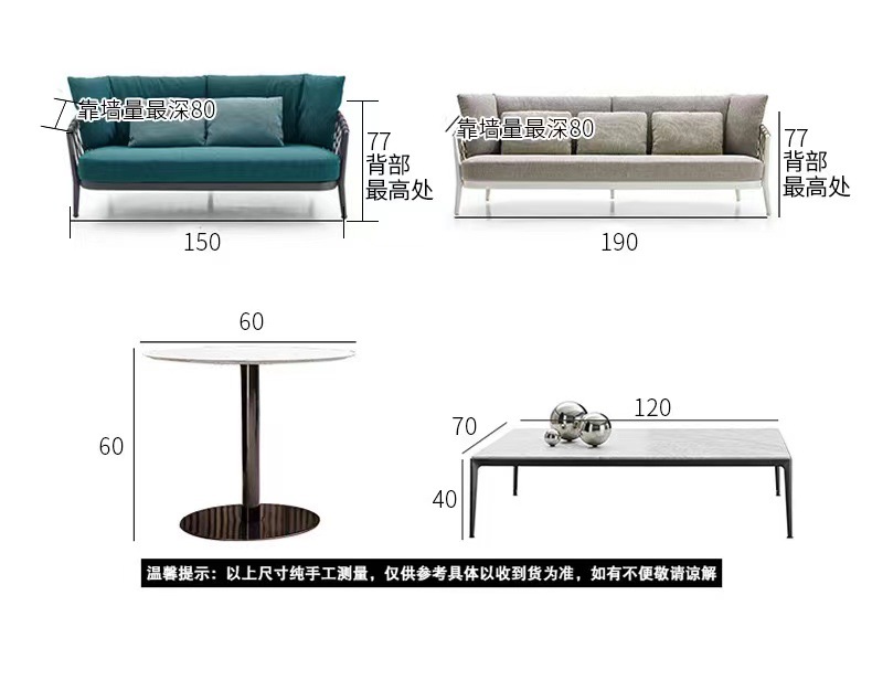 | Colores | Sofá individual,Sofá doble,Sofá de tres personas,Silla,Diámetro de la mesa de centro 50 (color opcional),Mesa de centro de 120*70CM mesa de roca de mesa |