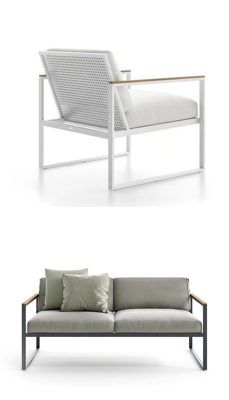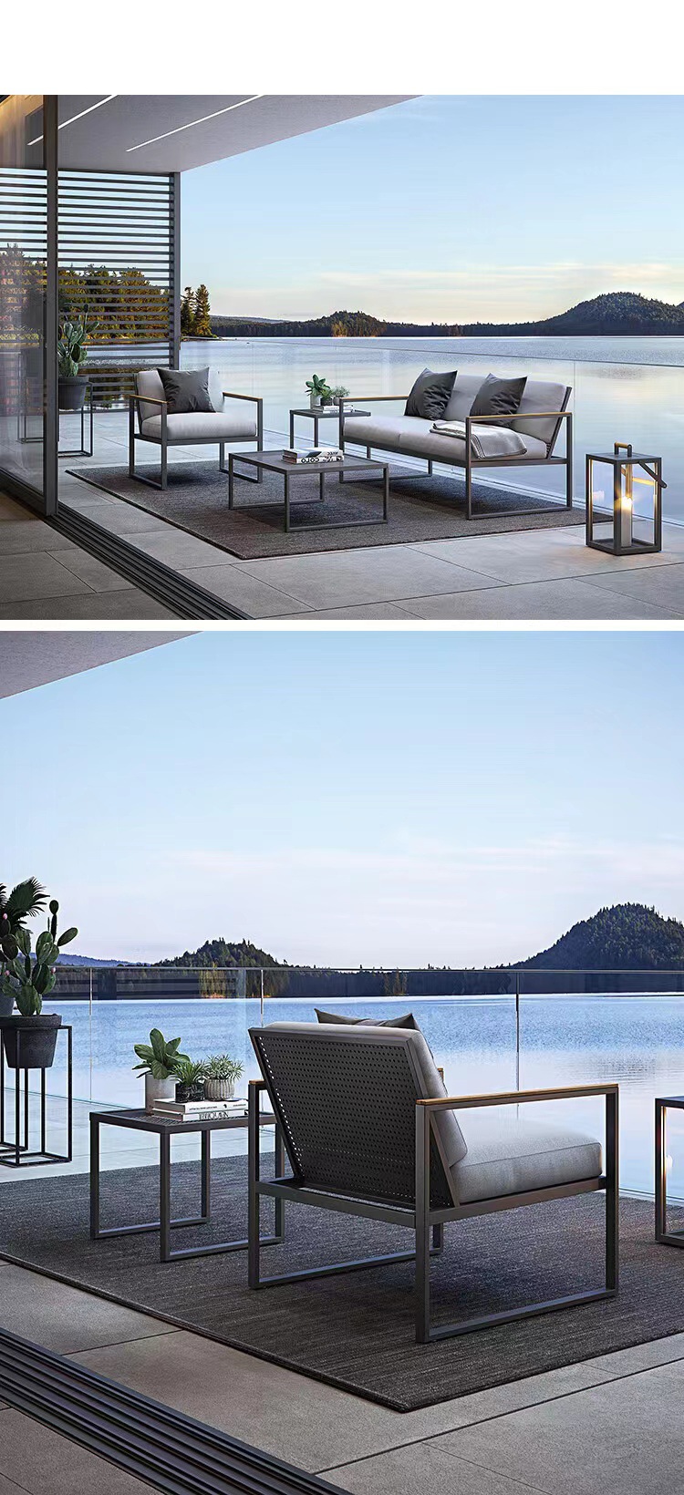 Sofá de aleación de aluminio al aire libre nórdico terraza villa muebles departamento de ventas residencial sofá de acero inoxidable combinación al aire libre