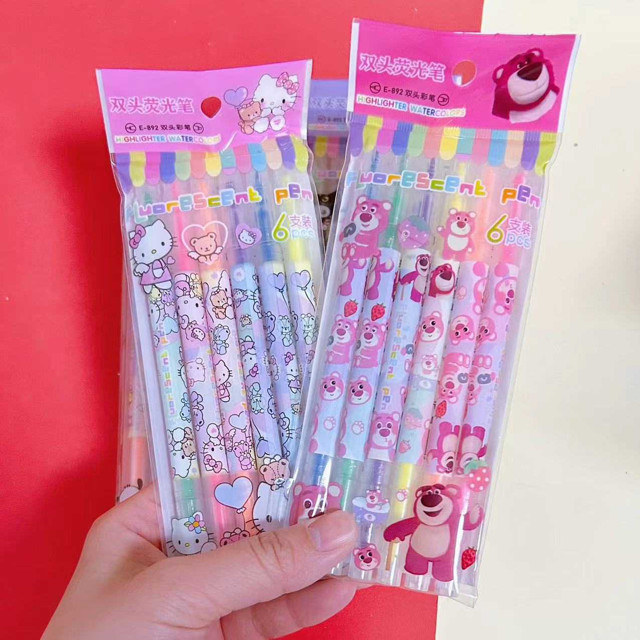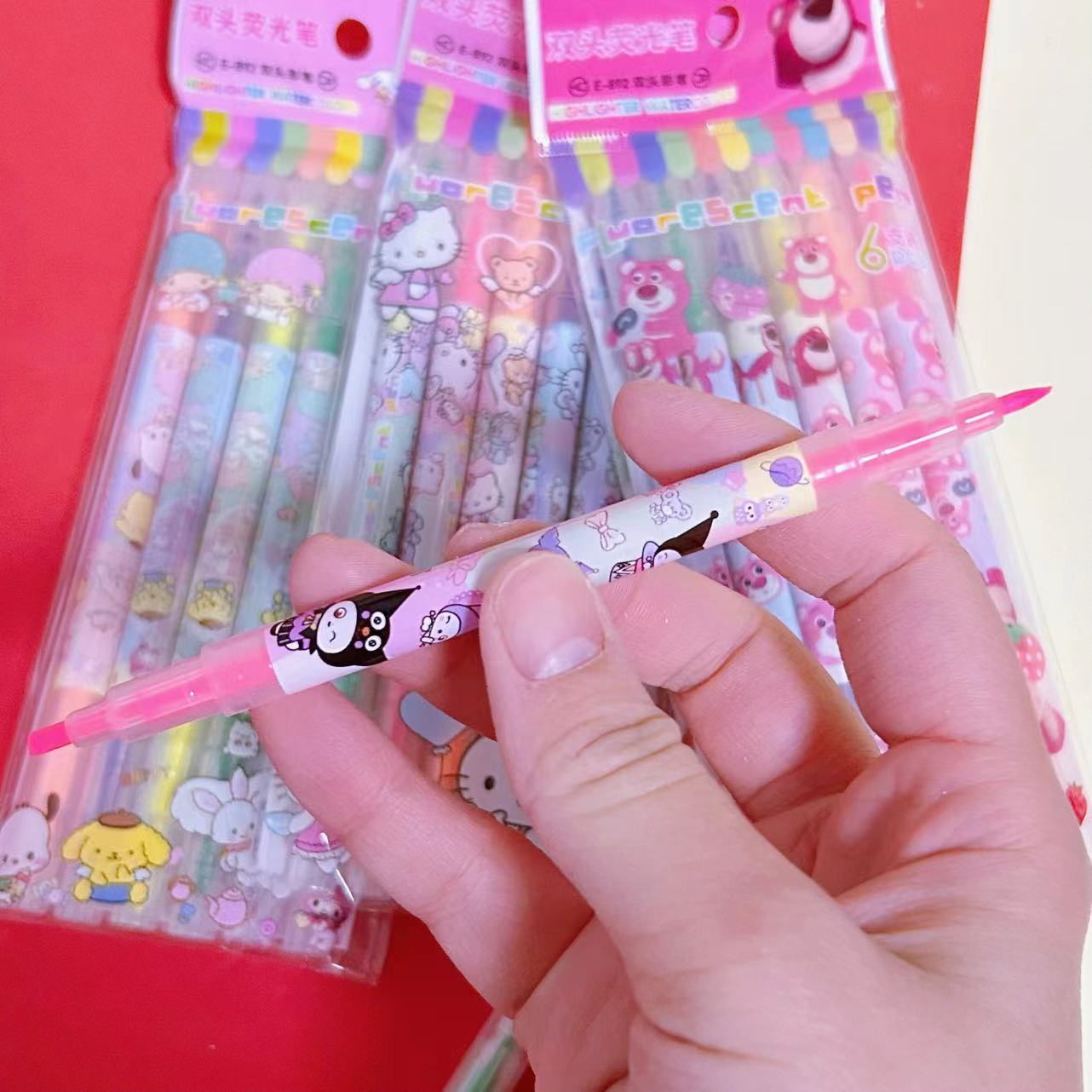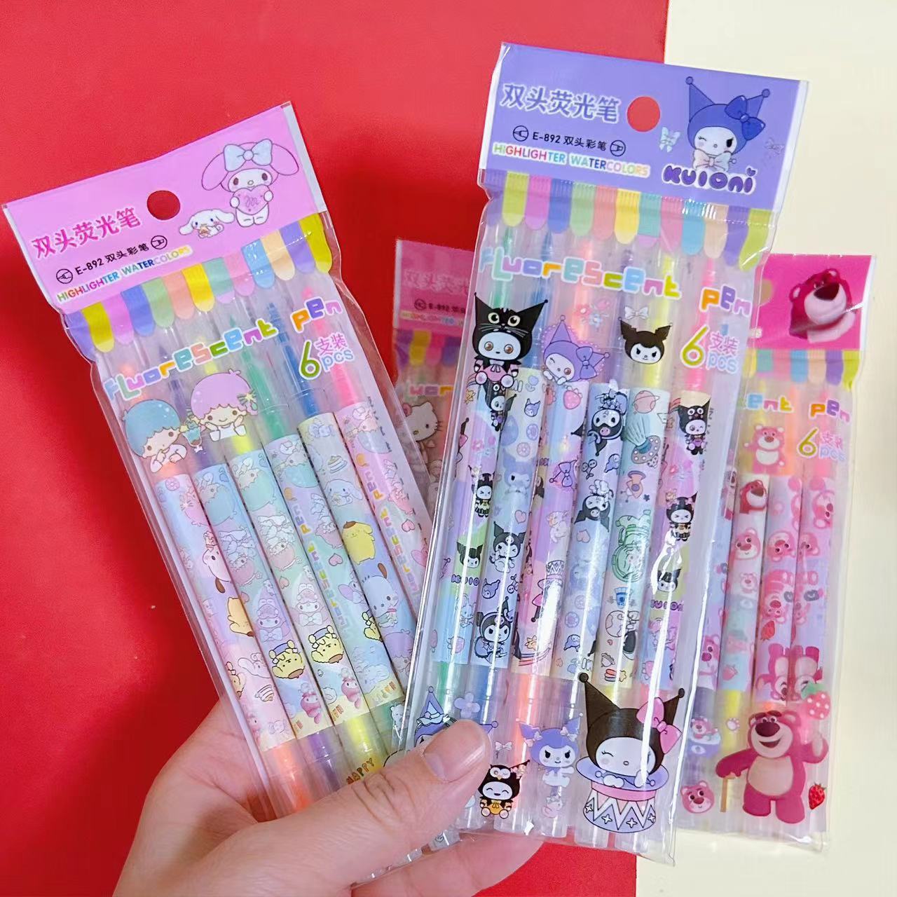 Marcadores de texto Sanrio con diseño de mascotas, marcadores de texto Kuromi de alta calidad para estudiantes, marcadores de texto de gran capacidad, juego de 6.