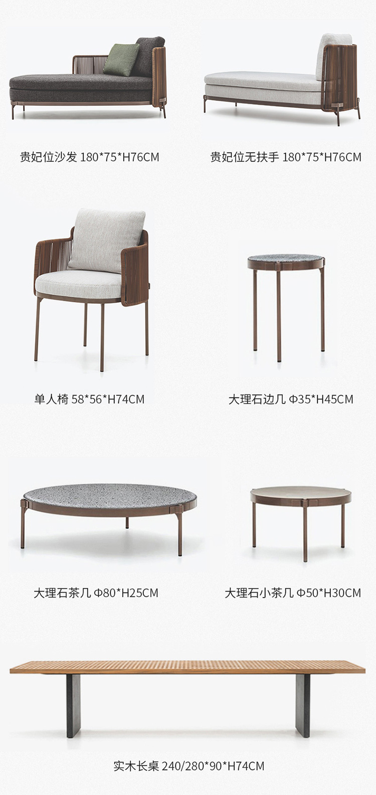 | Color | Sofás individuales, sofás individuales sin reposabrazos, sofás dobles, sofás triples, pedales, mesas de café de 35 cm de diámetro, mesas de café de 50 cm de diámetro, mesas de café de 80 cm de diámetro, sillas individuales, mesas de mármol de 70 cm de diámetro |