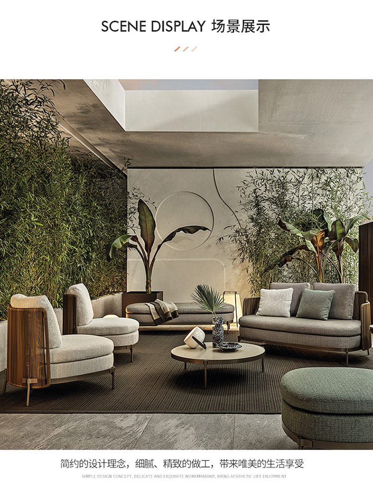 Diseñador de sofá al aire libre nórdico silla de lujo ligera trenzada de caña villa área de alojamiento residencial hotel patio área de ocio muebles