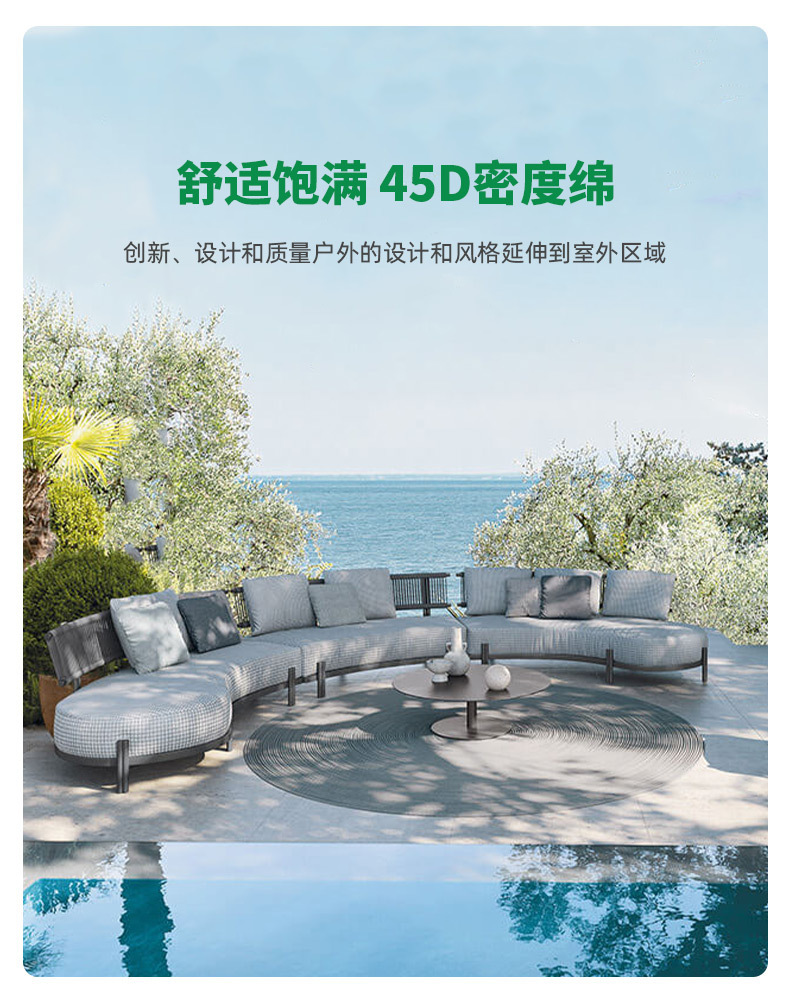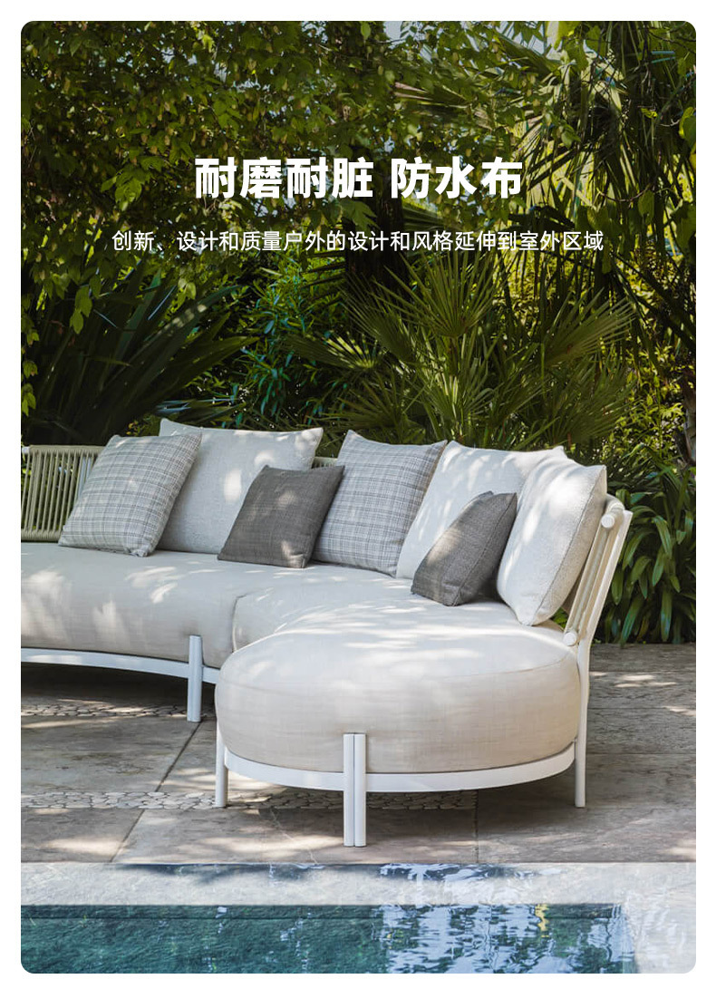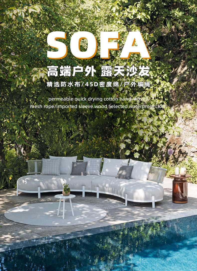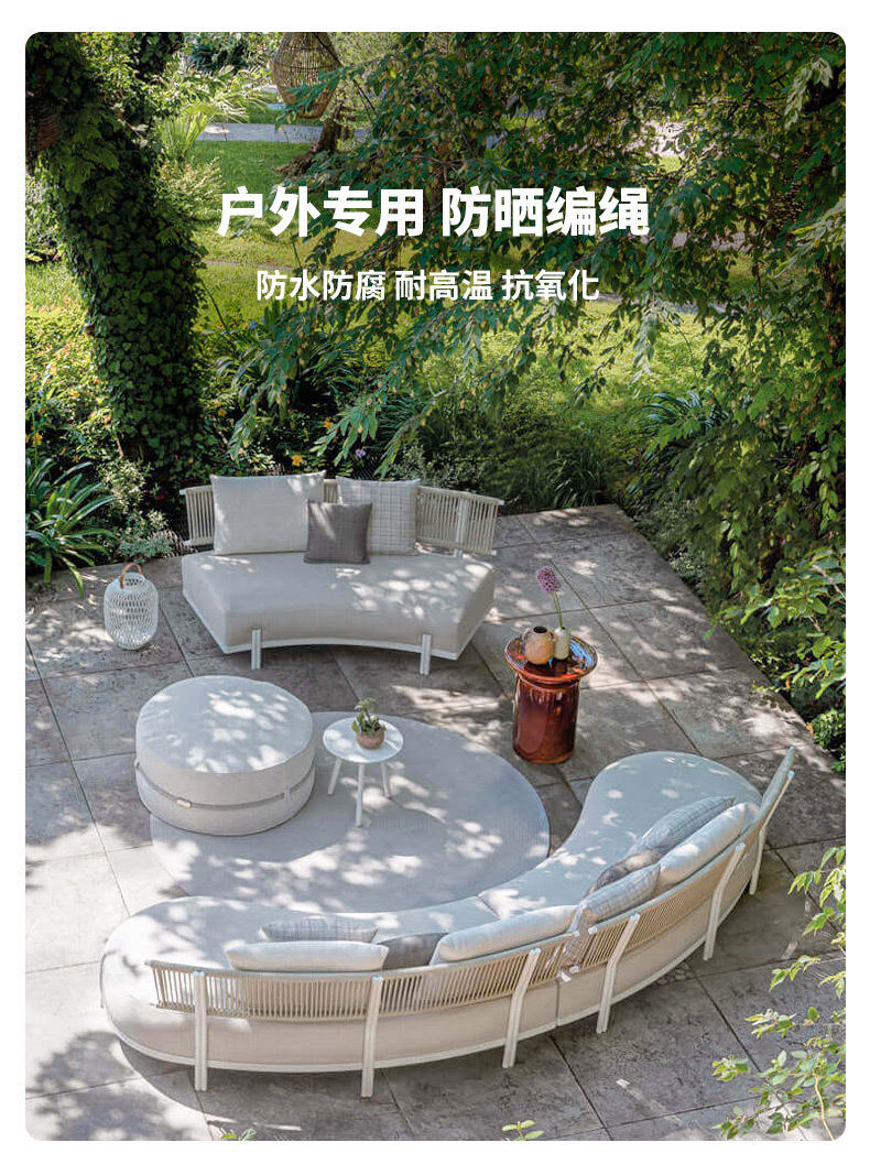 sofá al aire libre arqueado hotel villa patio al aire libre impermeable antioxidante sofá de cuerda de tracción