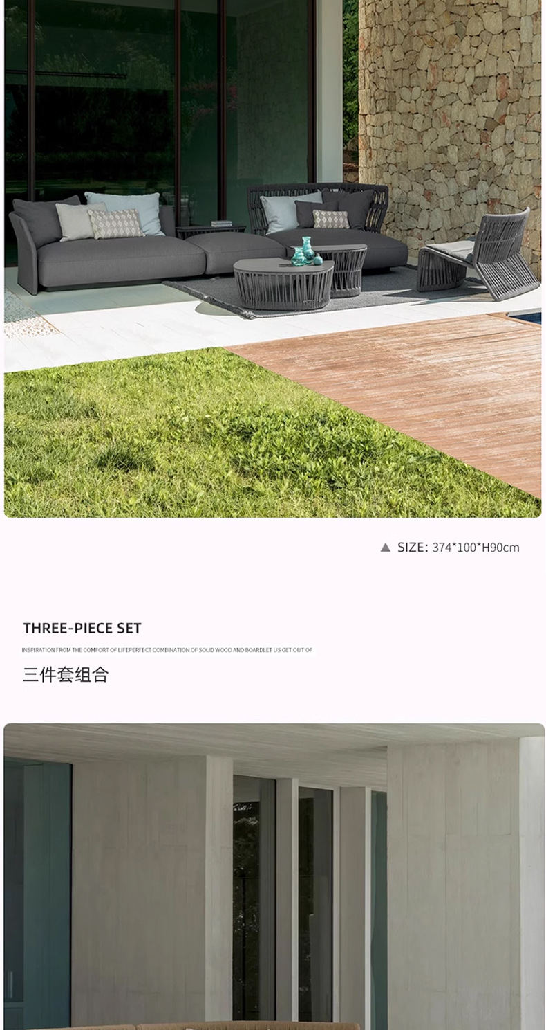 Jardín al aire libre nórdico patio sofá de ratán terraza villa al aire libre muebles impermeables casa de familia patio sofá de ocio