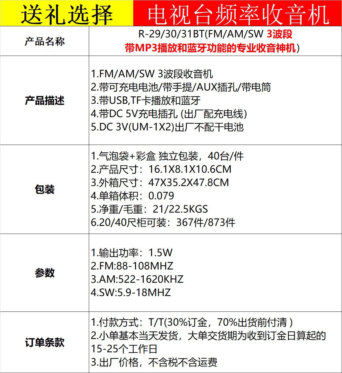 Fabricante ventas retro multibanda con linterna bolso multifuncional MP3 reproducción de alta calidad radio tarjeta