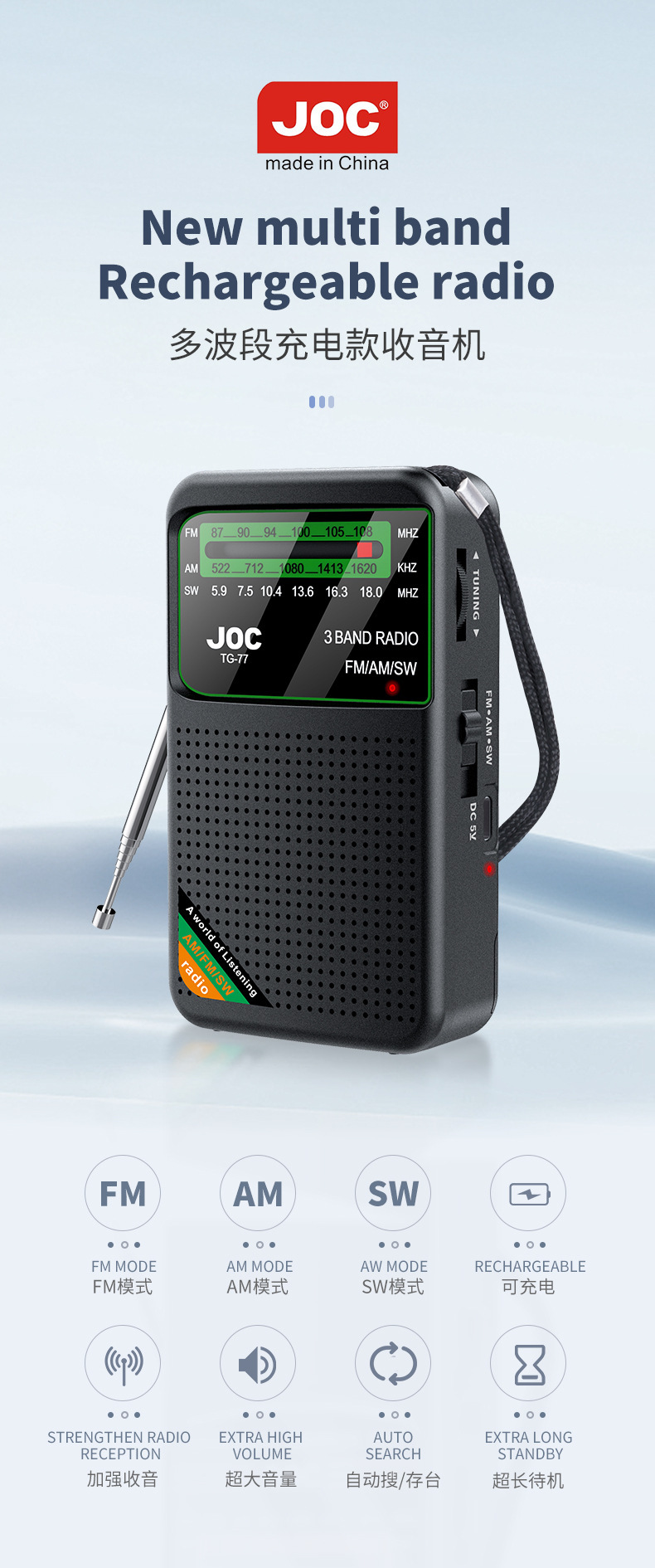 Radio mini portátil de Amazon FM / AM / SW Radio multibanda Radio de banda completa Radio de canal completo