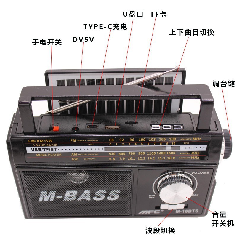 Nuevo transfronterizo de exportación de radio multifuncional europea soporte de ondas multi-segmento Bluetooth enchufe de tarjeta USB para personas mayores de alto volumen
