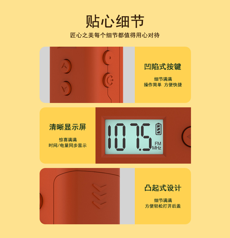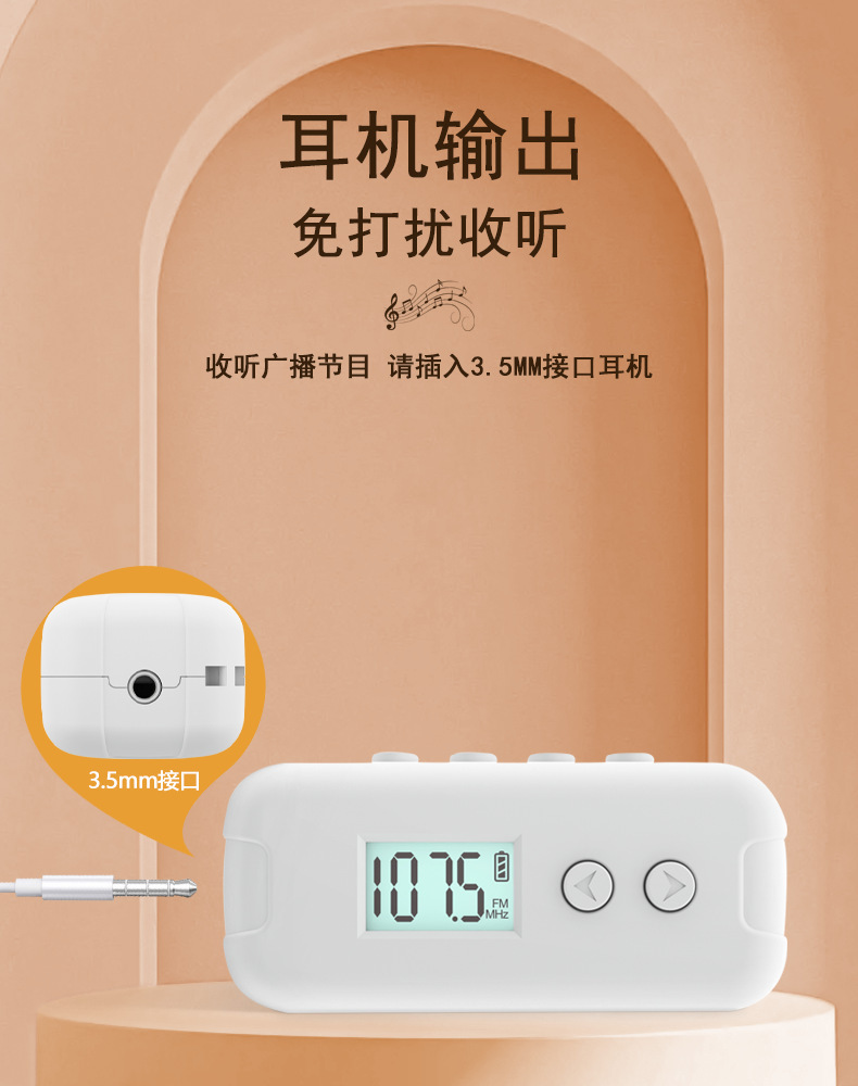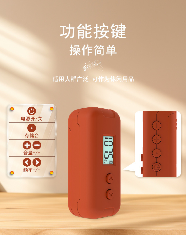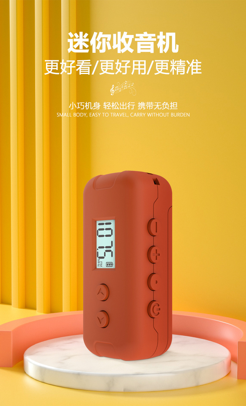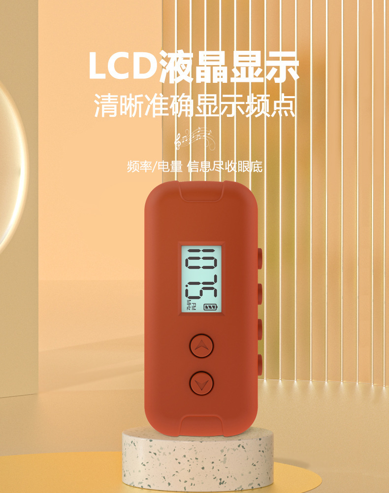 Mini radio de bolsillo FM FM adopta LCD LCD de alta definición, pantalla LCD, punto de frecuencia, tiempo, batería, receptor DSP