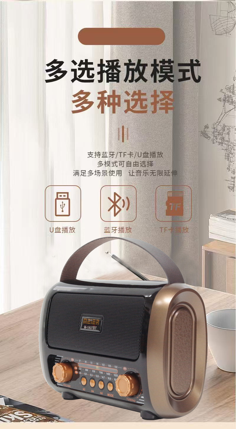 Venta al por mayor transfronteriza nuevo estilo retro sentimiento banda completa FM inalámbrico Bluetooth radio TF tarjeta reproductor de MP3