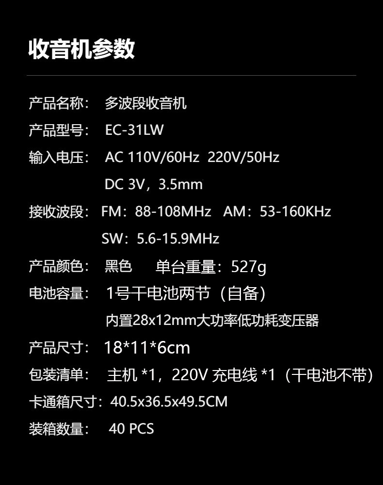 Ventas de fabricantes transfronterizos de radio vintage FM / AM / LW / SW1 - 4 sintonización multibanda portátil 220V