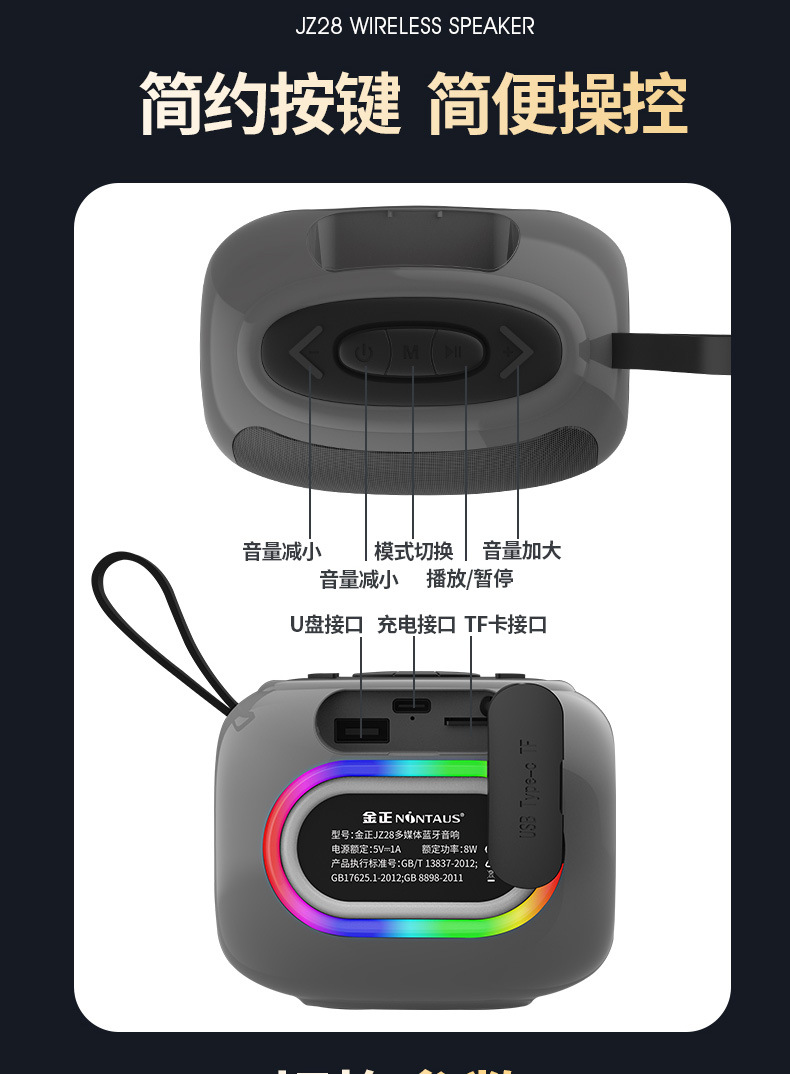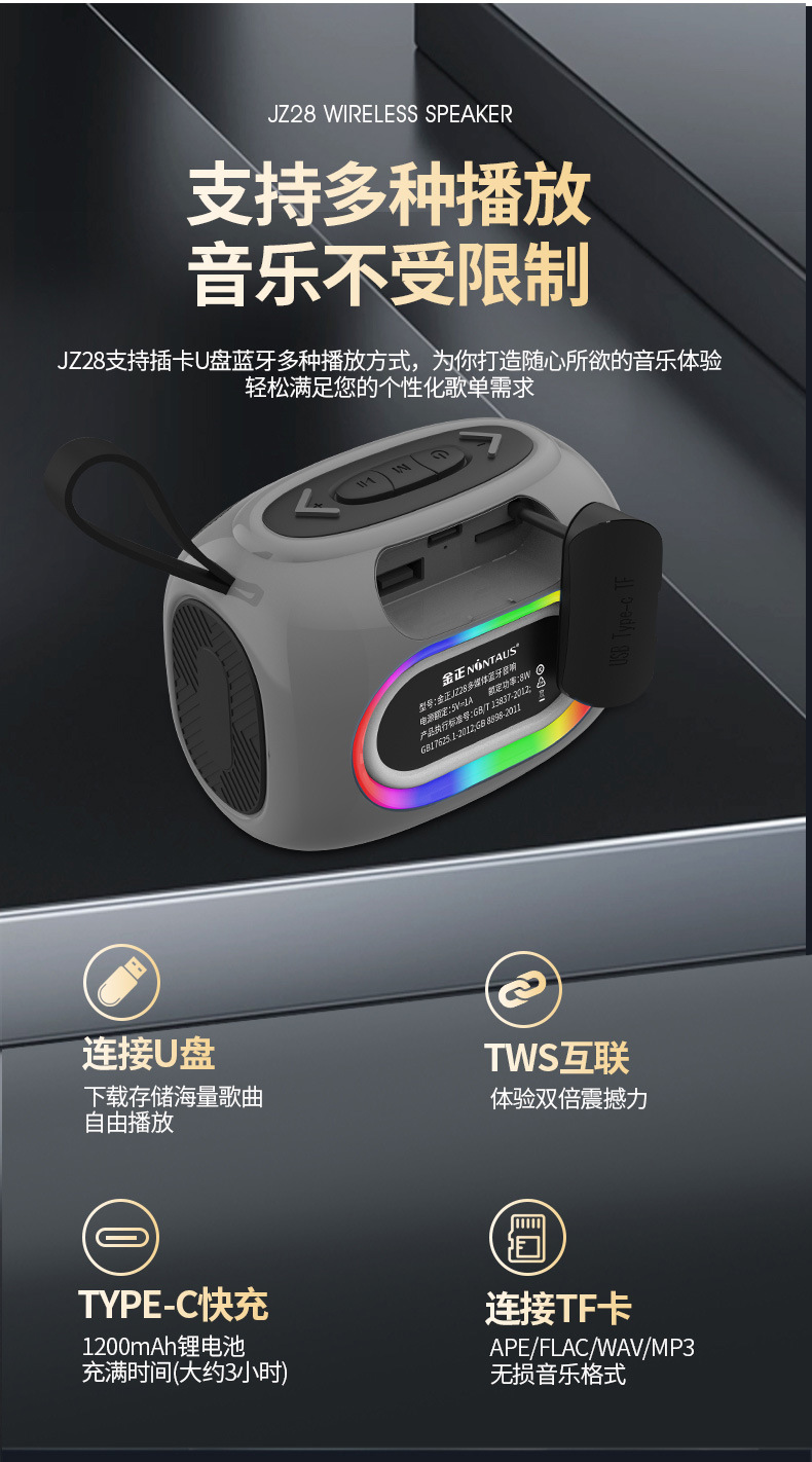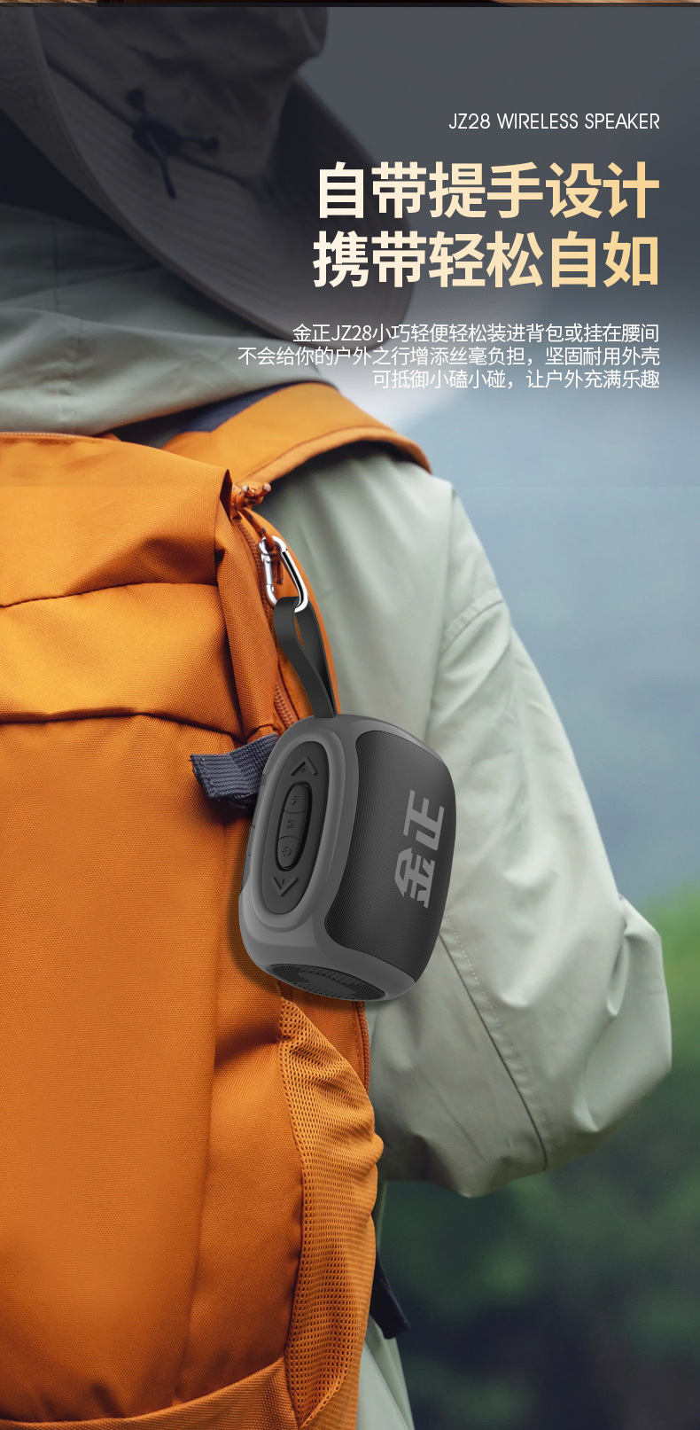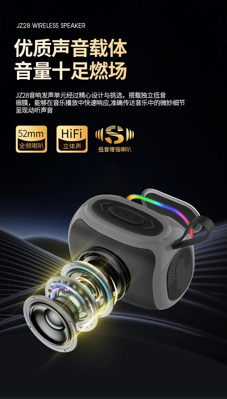 Jinzheng JZ28 altavoz Bluetooth inalámbrico alto volumen portátil al aire libre a prueba de agua a prueba de polvo subwoofer portátil