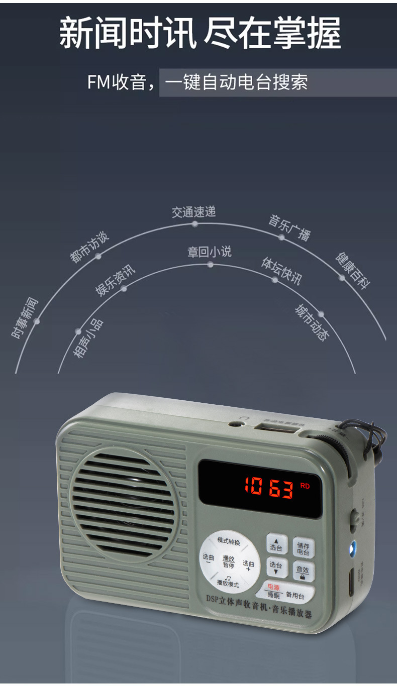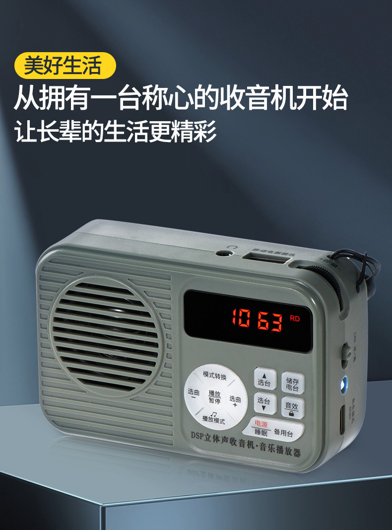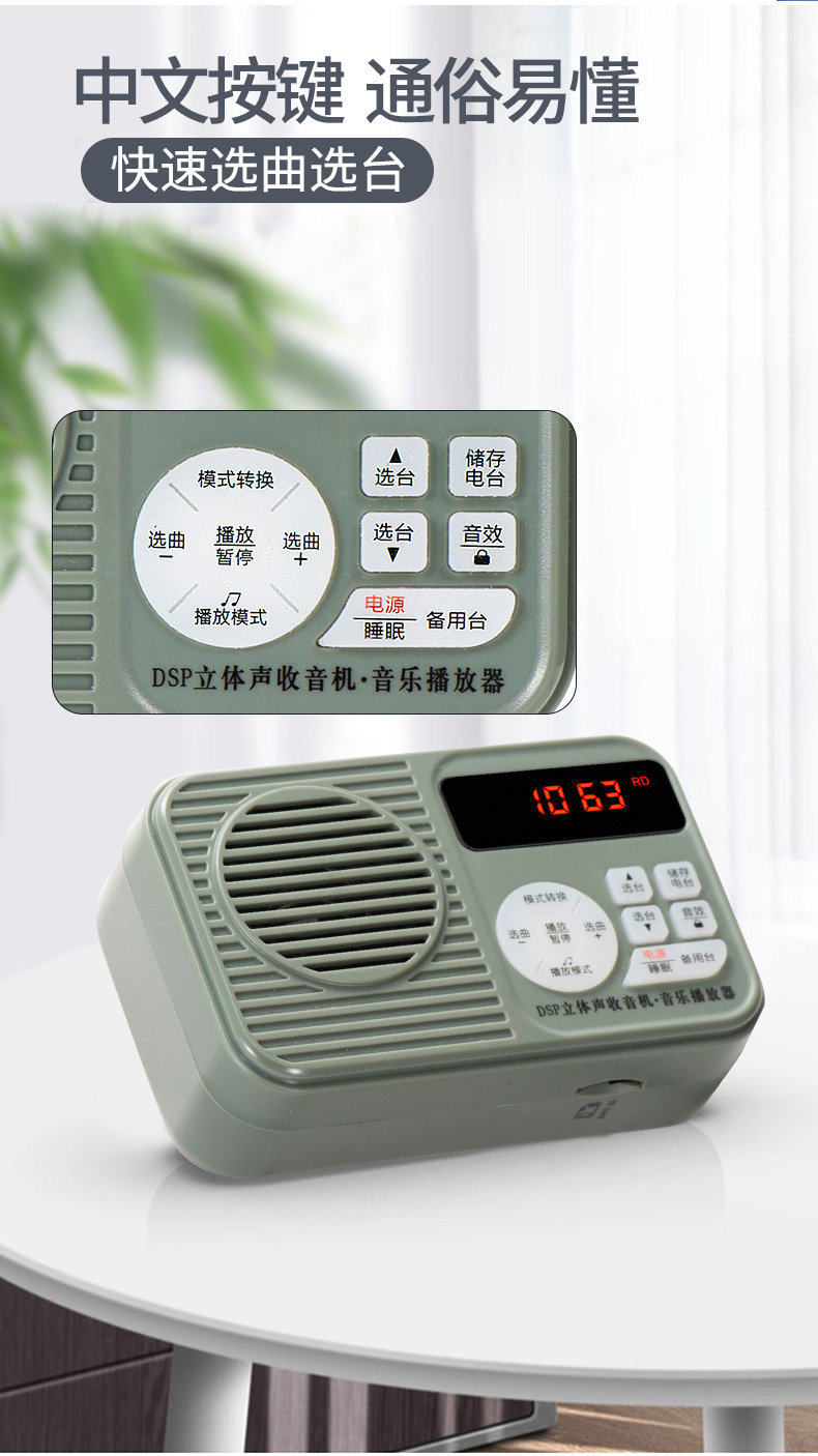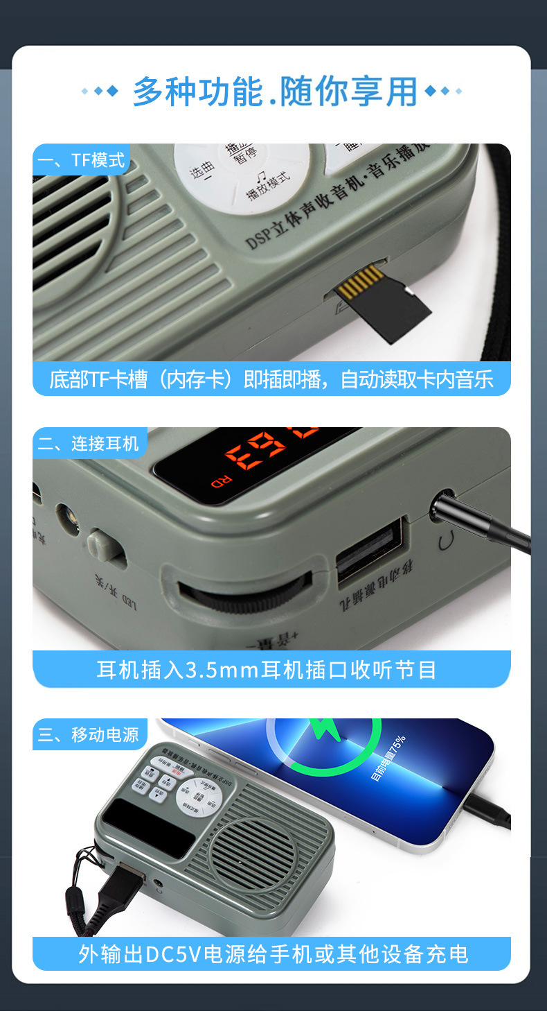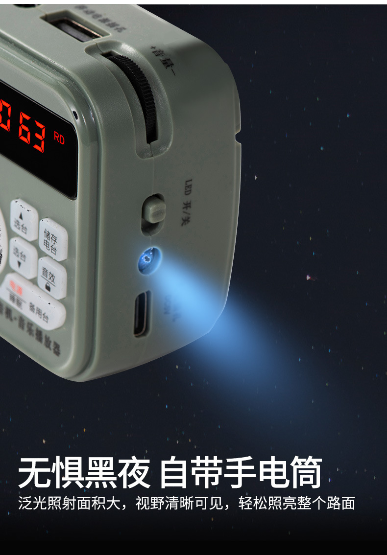 Han Rongda HRD231 radio FM portátil tarjeta de enchufe estéreo altavoz Bluetooth linterna de carga de emergencia