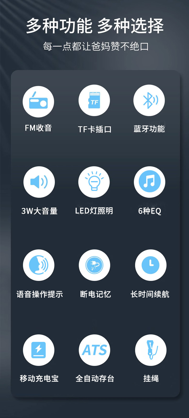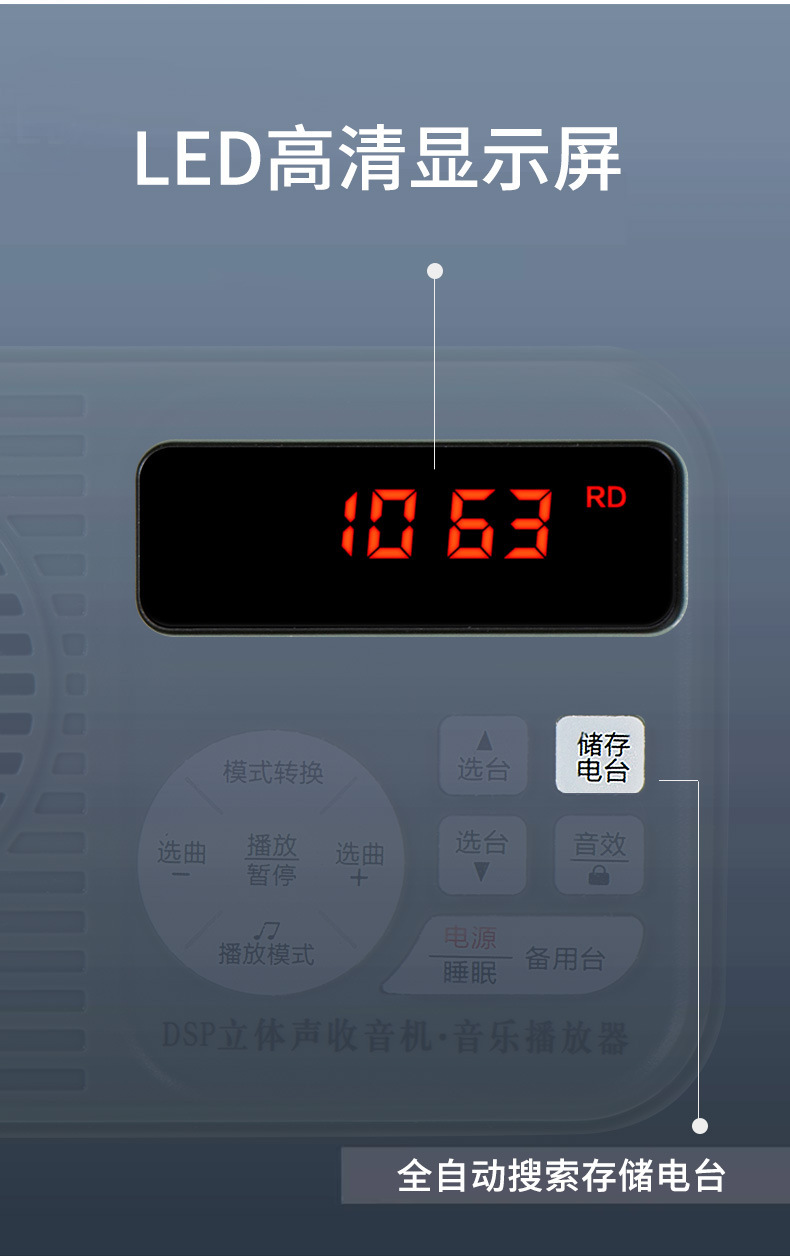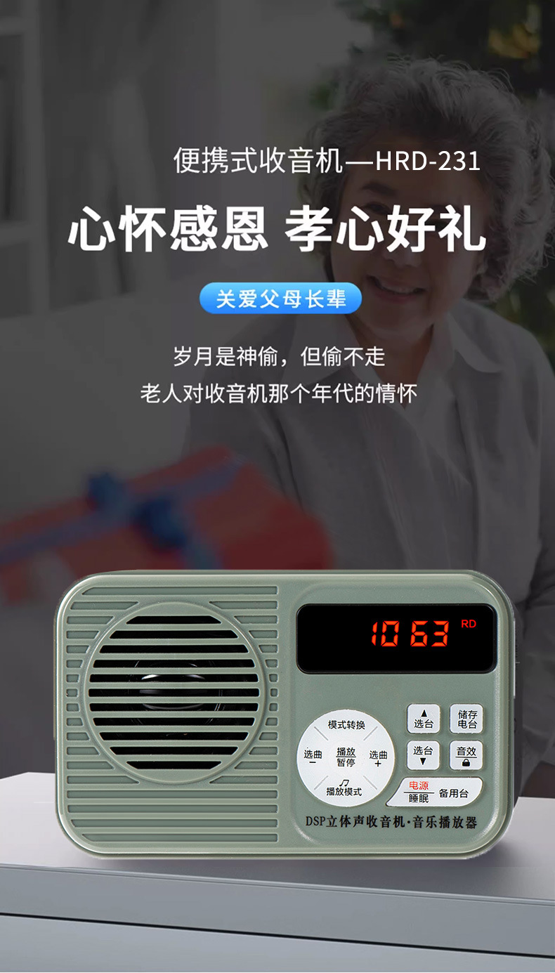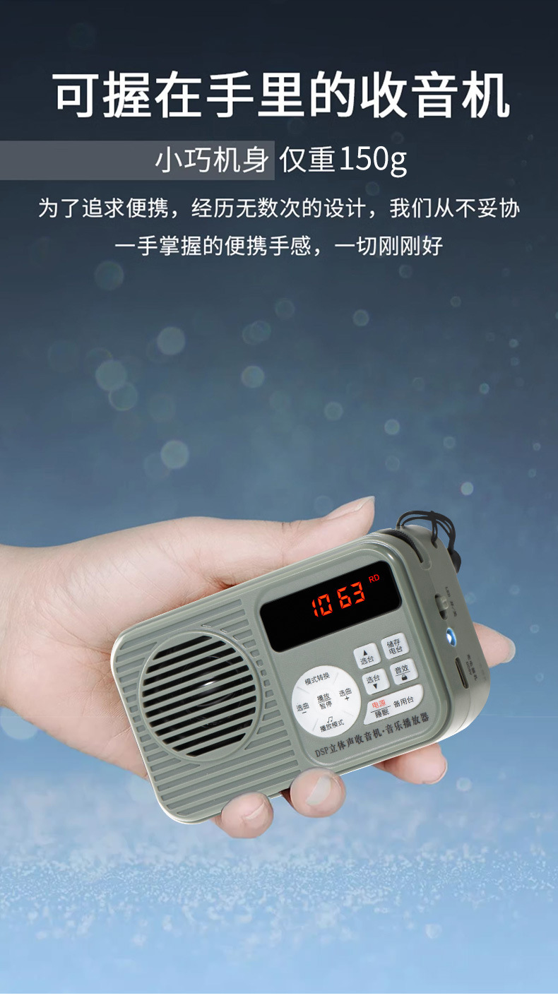 Han Rongda HRD231 radio FM portátil tarjeta de enchufe estéreo altavoz Bluetooth linterna de carga de emergencia