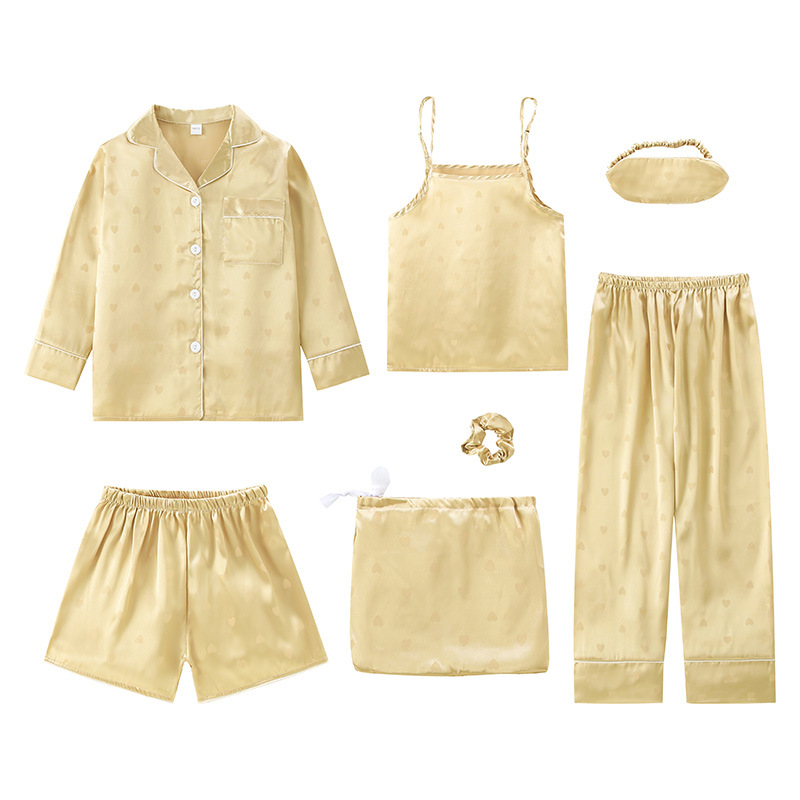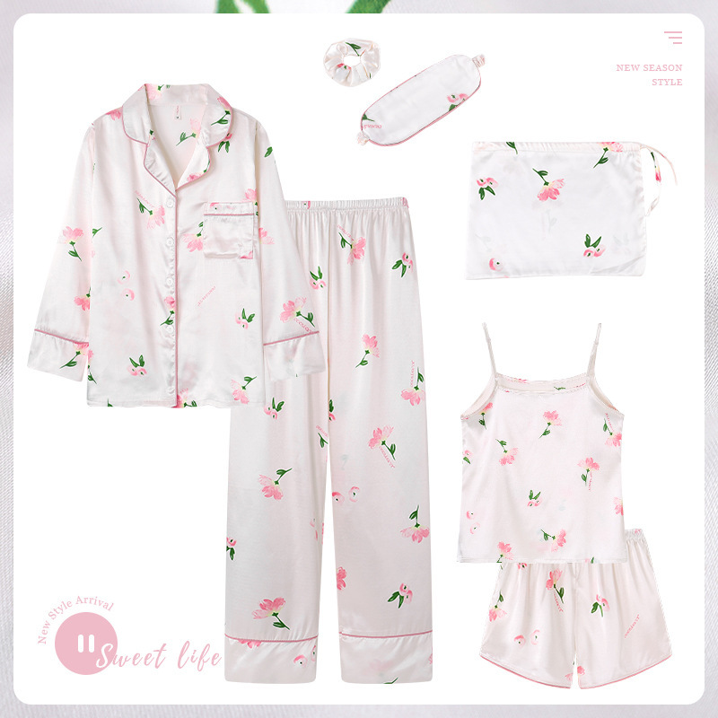 Cross-border ins2025 pijamas de primavera y otoño de mujeres siete piezas conjunto de rayas de ropa de casa coreana cuatro estaciones pijamas delgados