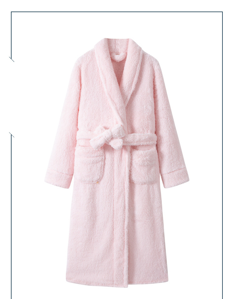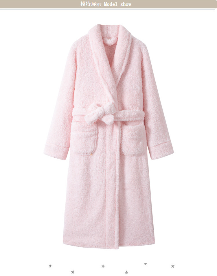Camisón de lana de coral para mujer albornoz de hotel grueso de doble cara albornoz de longitud media otoño e invierno pijamas de hombre túnica franela