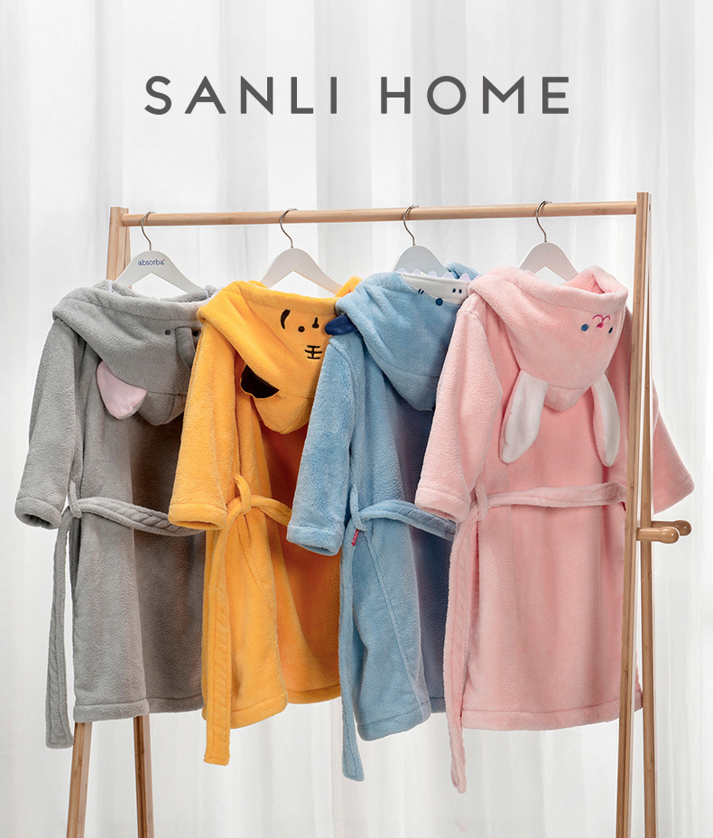 [Preventa] Sanli toallas bata de baño para niños bata de dibujos animados bata de baño con sombrero bata de coral terciopelo ropa para el hogar pijamas para hombres y mujeres
