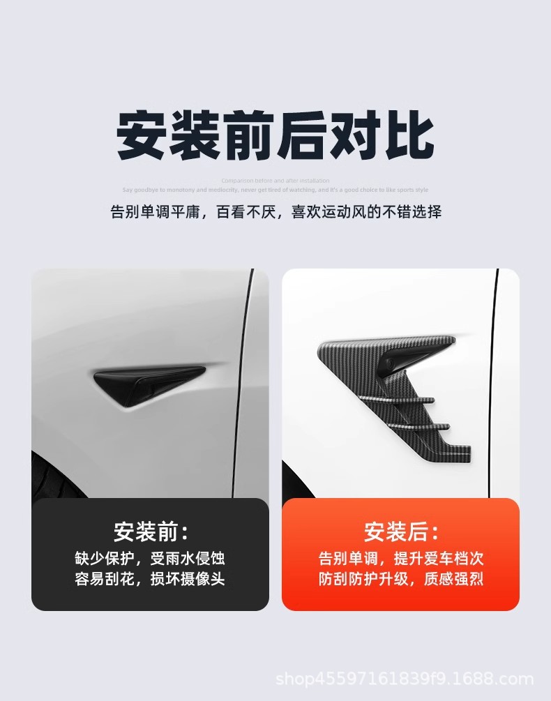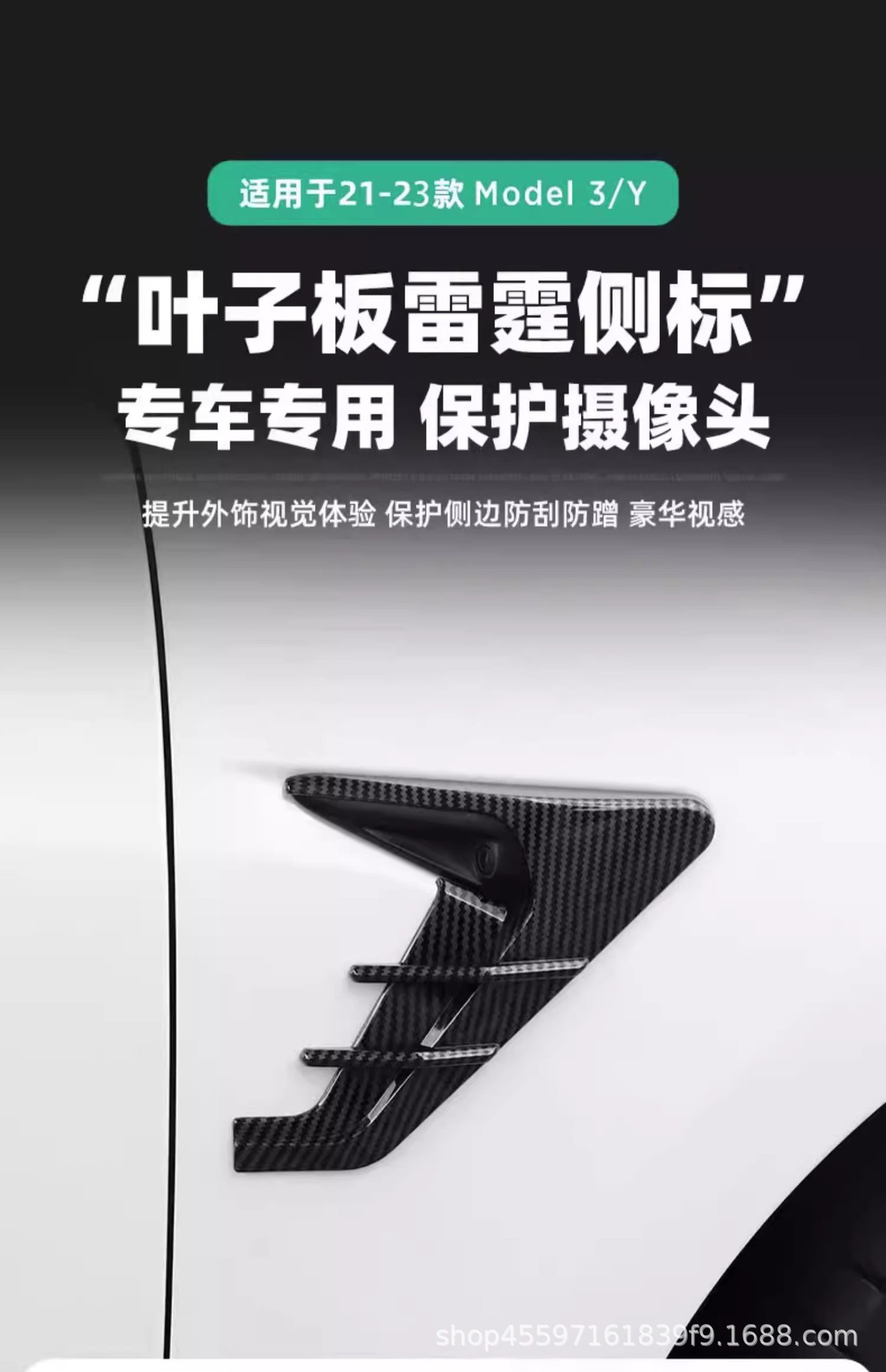 Aplicable a Tesla modelo 3 / Y hoja Thunder logotipo lateral cámara cubierta de decoración protector piezas de modificación