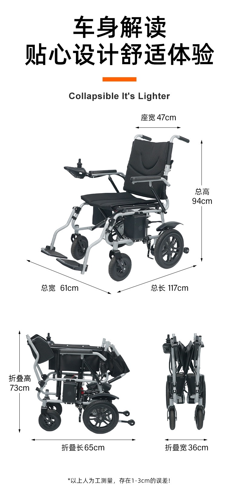 Pequeña silla de ruedas eléctrica de viaje 12A batería de plomo-ácido