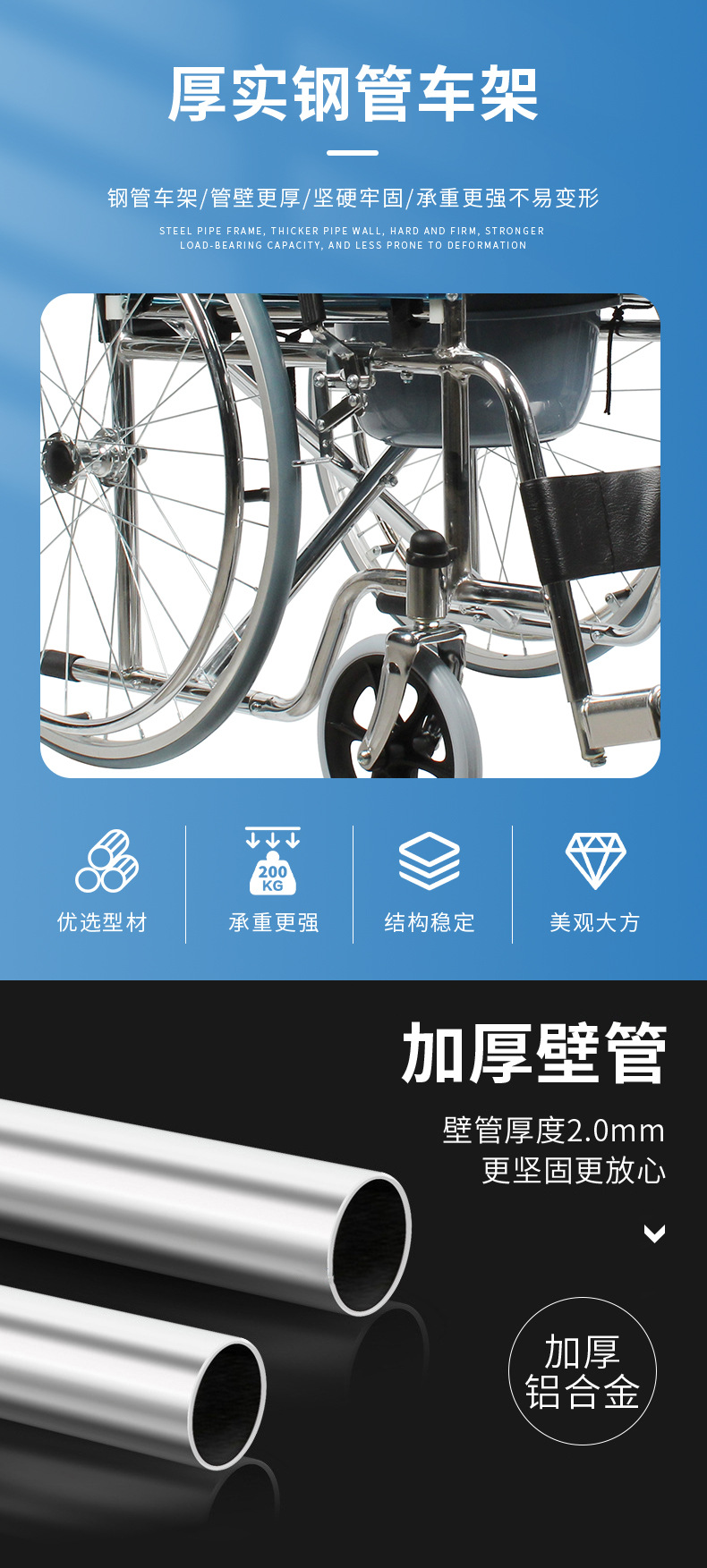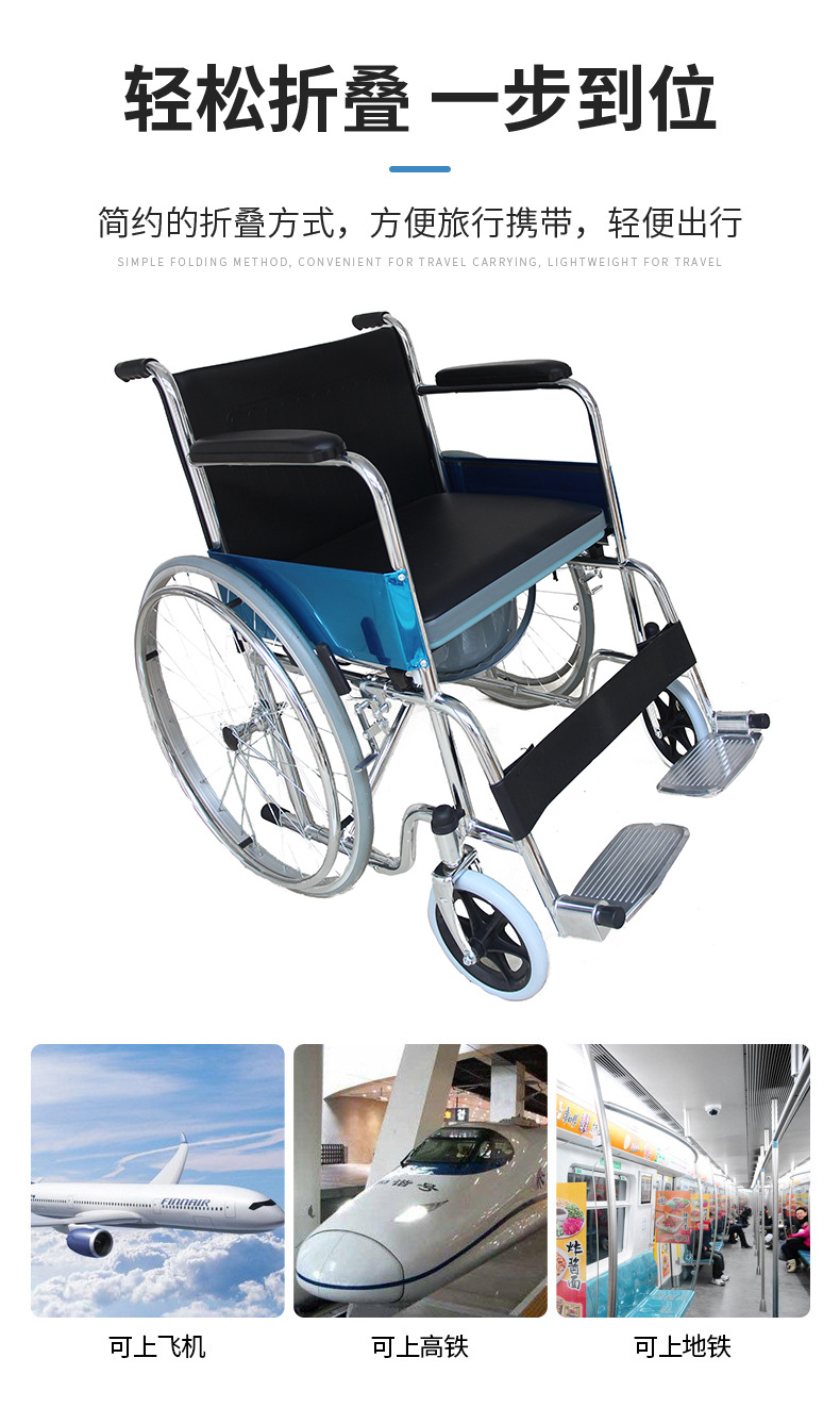 Silla de ruedas de aleación de aluminio plegable portátil del fabricante Silla de ruedas de acero al carbono manual para personas discapacitadas Silla de ruedas para personas mayores