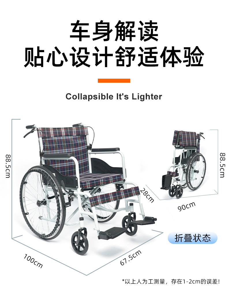 Silla de ruedas manual al por mayor transfronteriza Silla de ruedas para personas mayores discapacitadas al por mayor scooter plegable fácil portátil para personas mayores