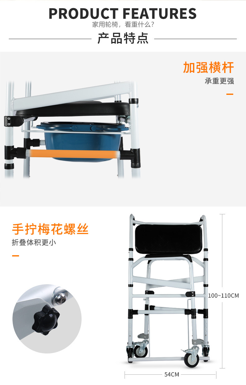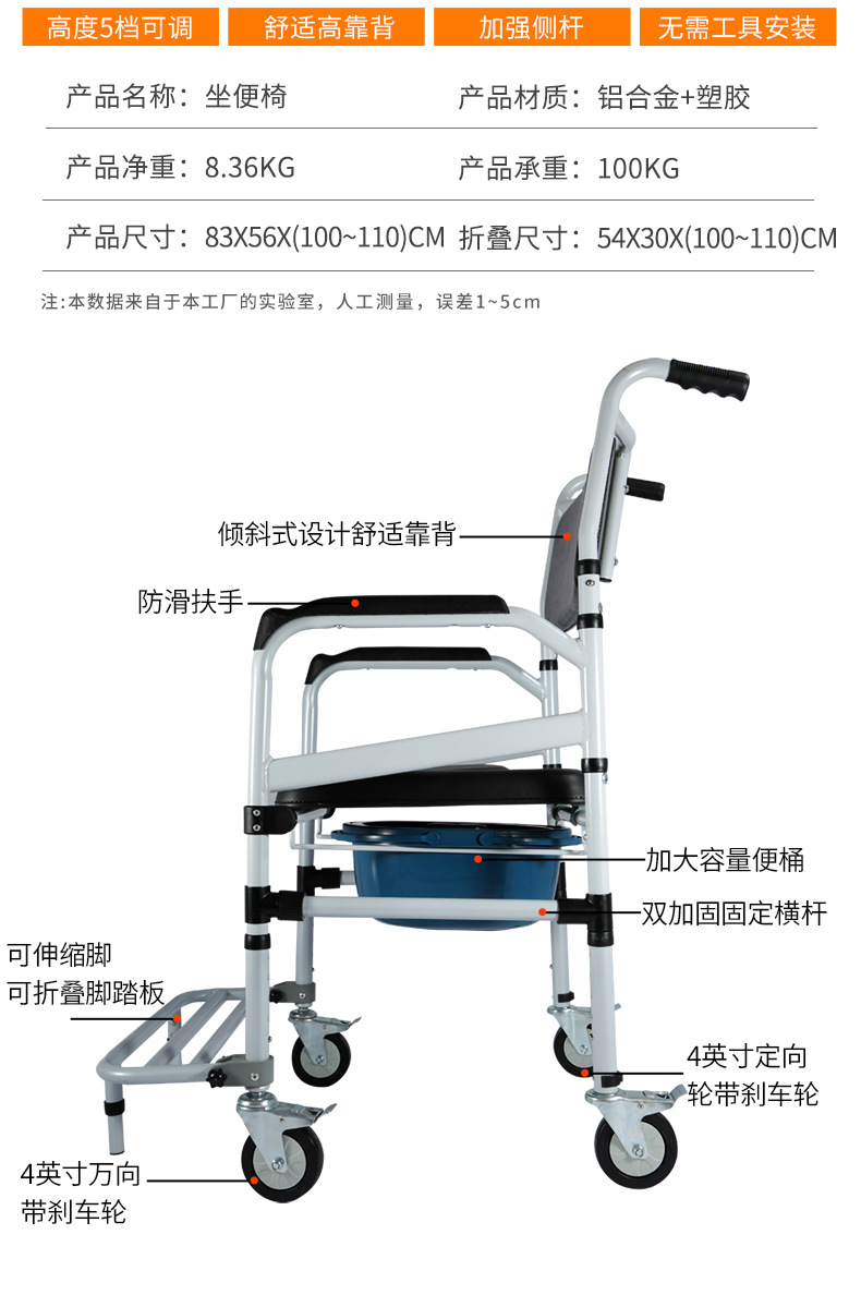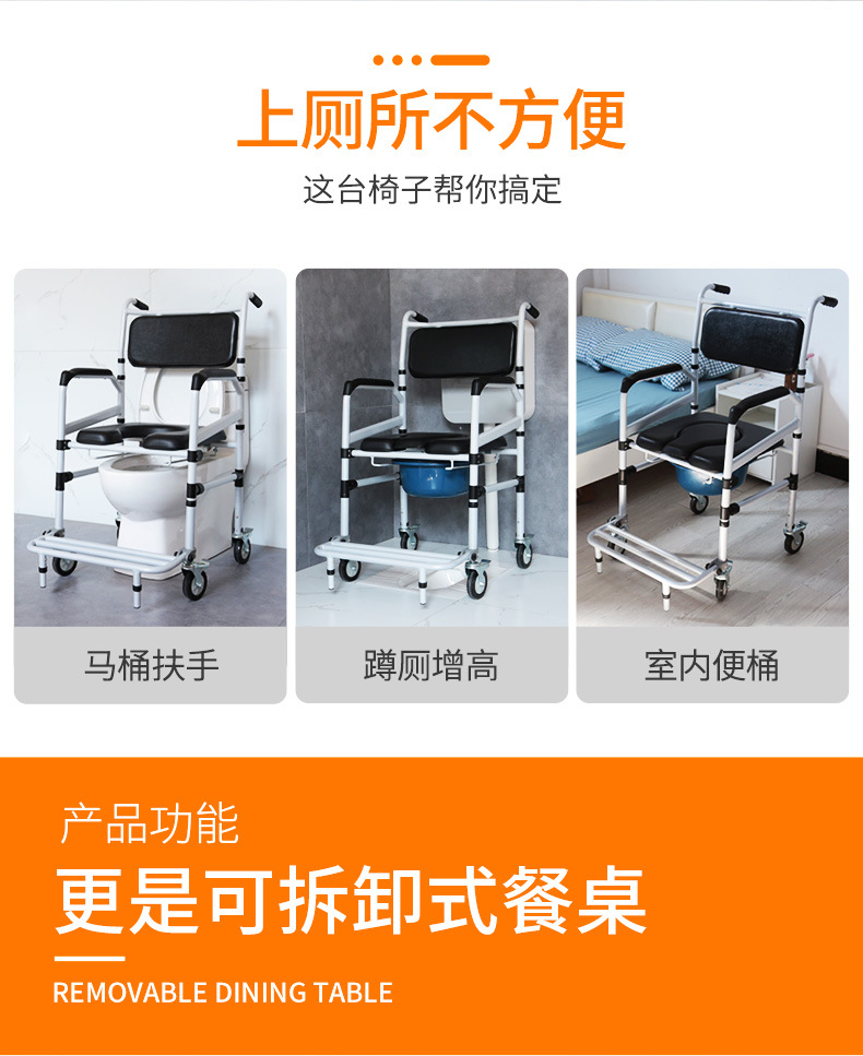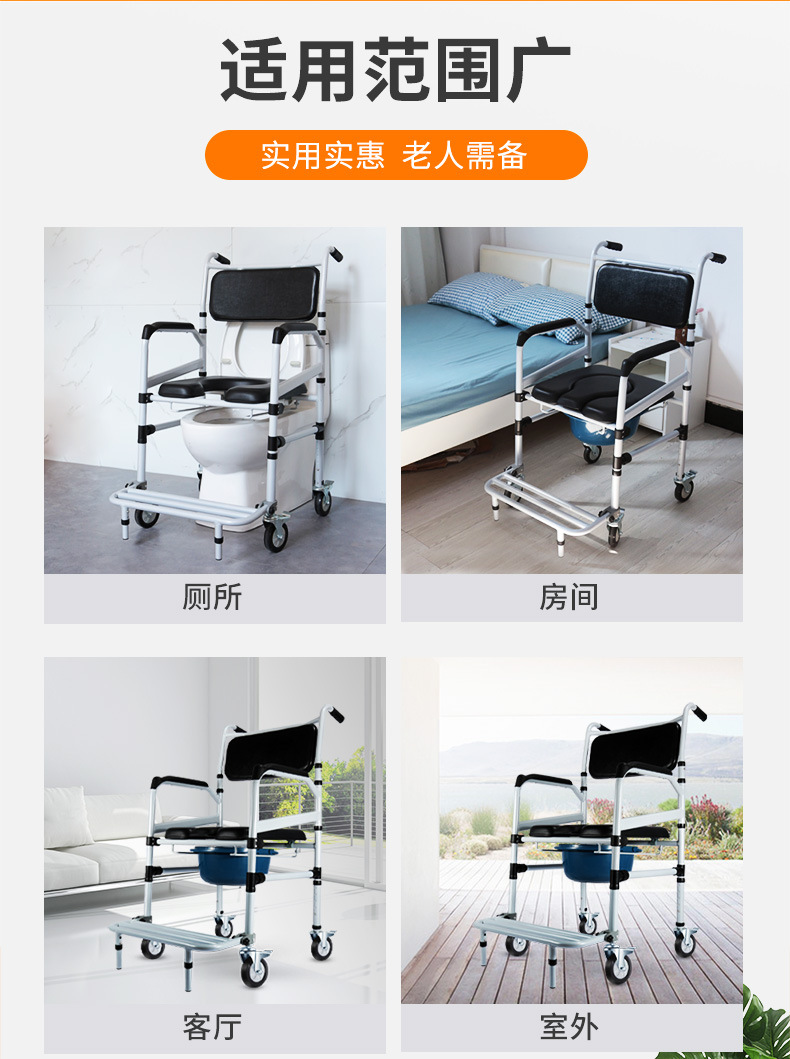 Silla de inodoro con discapacidad ancianos mujeres embarazadas aleación de aluminio plegable ligero portátil inodoro Silla de baño con freno